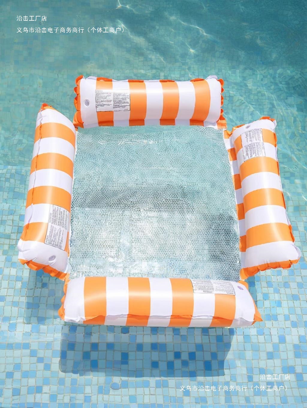 • 사각 스트라이프 메쉬 플로팅 침대 오렌지 + 풋 펌프