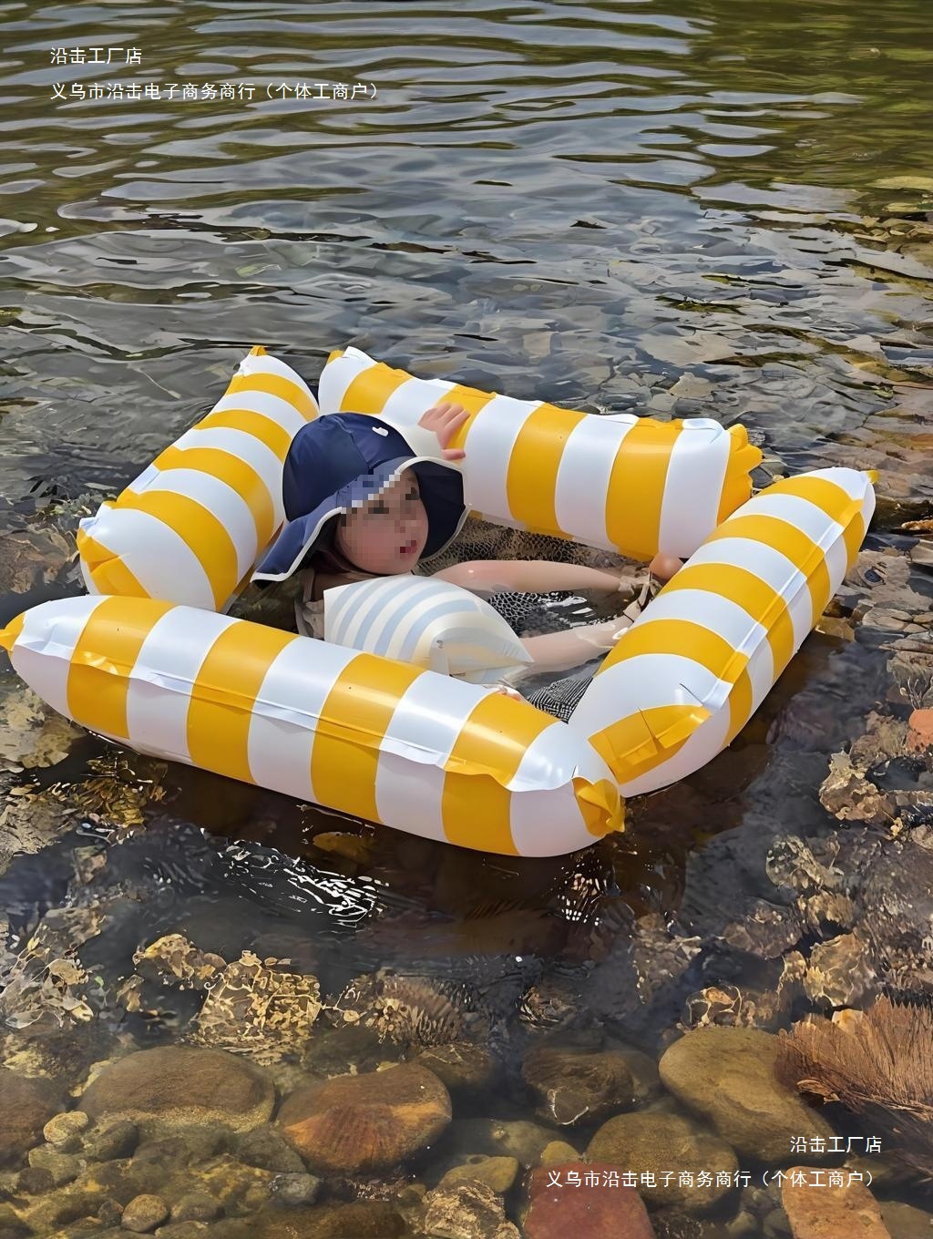 • 사각 스트라이프 메쉬 플로팅 침대 옐로우 + 풋 펌프