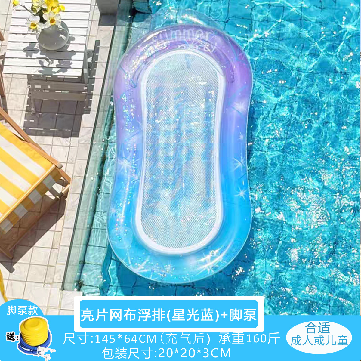 • 스타라이트 블루 스팽글 메쉬 플로팅 침대 + 풋 펌프