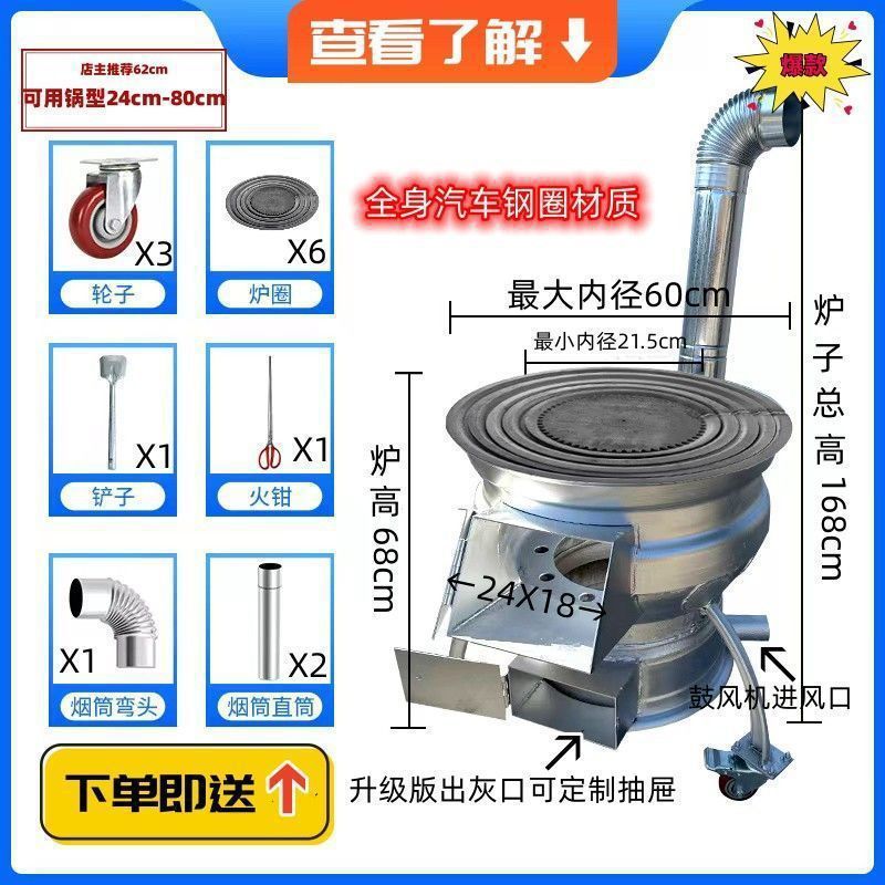 새로운 장작 스토브, 장작 및 석탄 이중 용도 야외 휴대용 모바일 장작 스토브, 자동차 휠 허브 수정 농촌 가정용 스토브