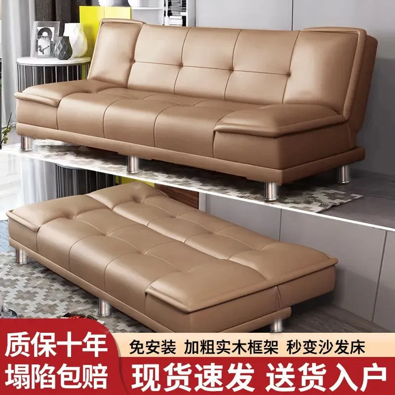 소파 거실 작은 아파트 2025 새로운 아파트 침실 임대 집 단단한 나무 접이식 이중 목적 작은 가죽 소파 침대