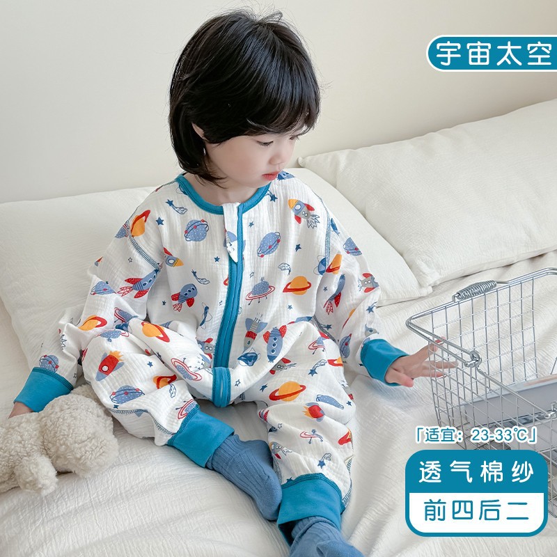 Bebebus 어린이 침낭 여름 순수 코튼 거즈 소년 얇은 에어컨 아기 안티 킥 이불 아기 광저우