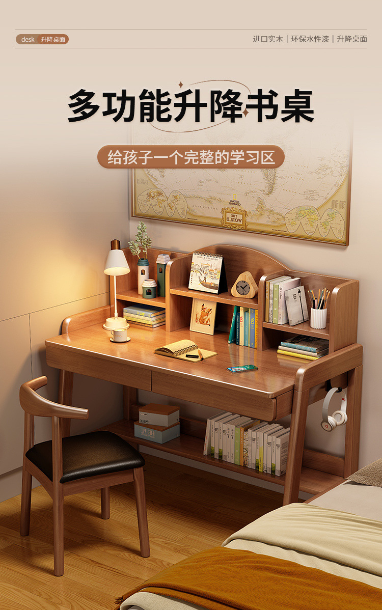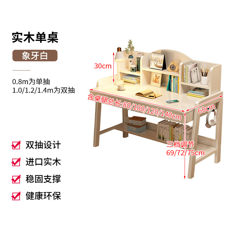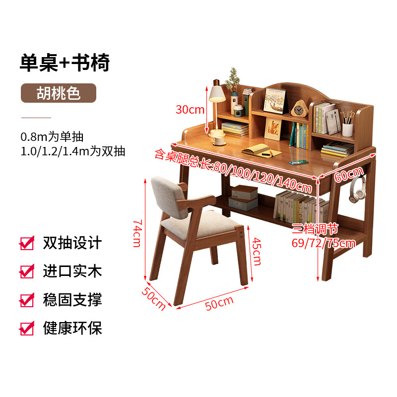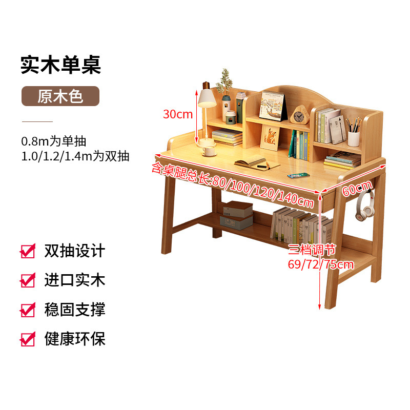 초등학생과 중학생을 위한 원목 책상, 가정용 간이 책상, 중학생을 위한 리프팅 가능한 책상스토어 가기