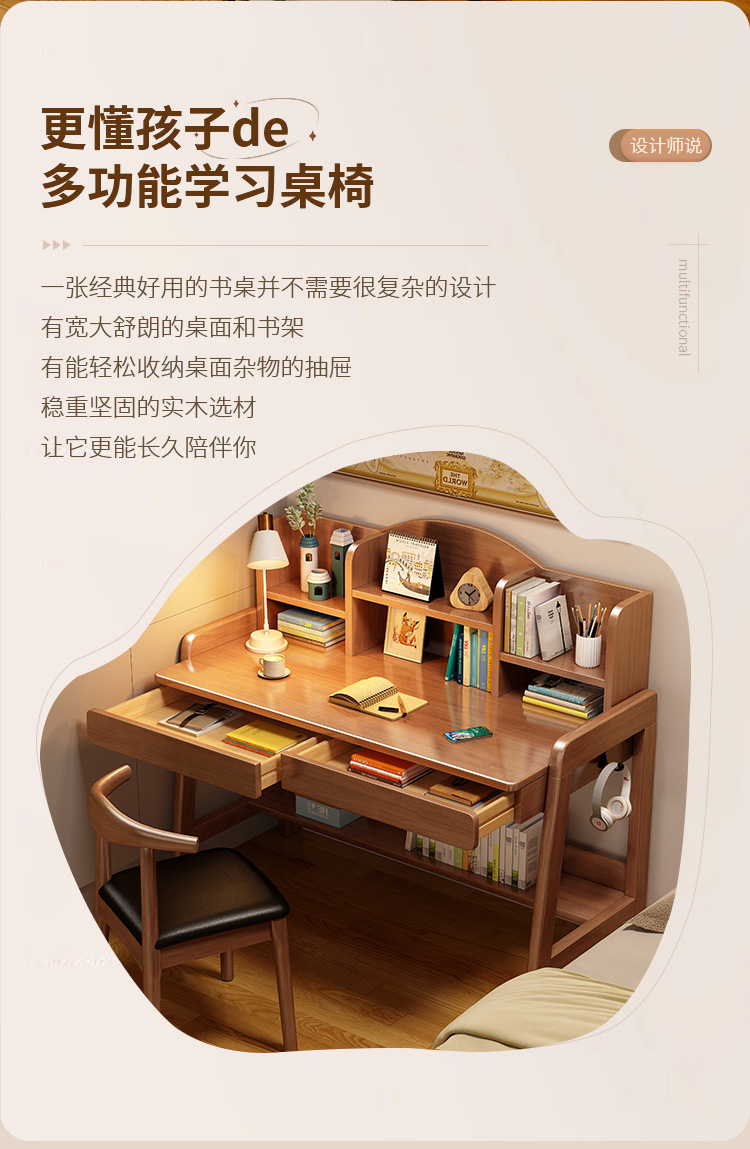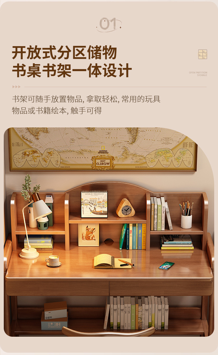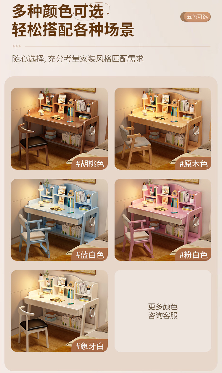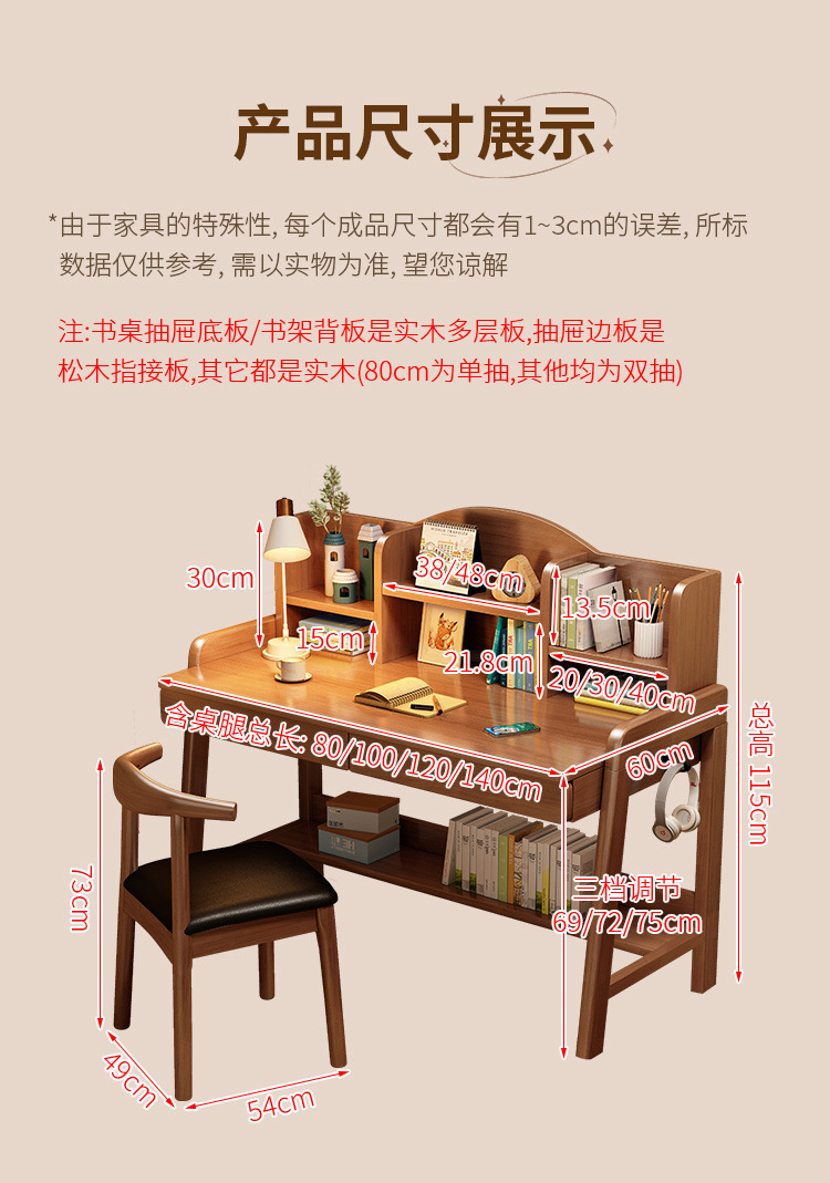 초등학생과 중학생을 위한 원목 책상, 가정용 간이 책상, 중학생을 위한 리프팅 가능한 책상스토어 가기