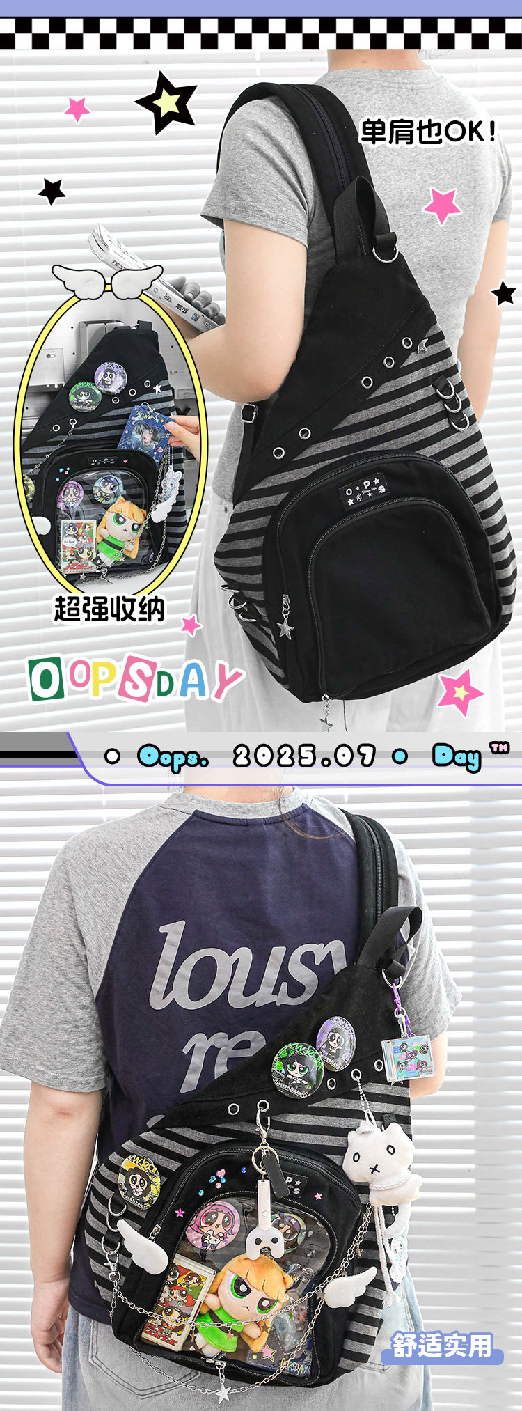 OOPSDAY 휴식의 날 KiraKira 활과 화살 가방 고대 싱글 숄더 크로스백 2차원 인형 가방 통증 가방스토어 가기