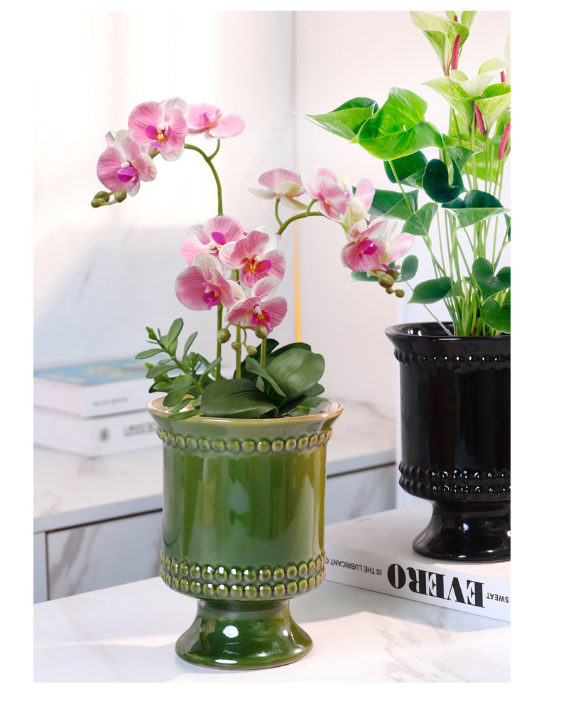 구멍이있는 프랑스식 높은 세라믹 화분 녹색 데스크탑 입구 홈 나비 난초 거실 장식 세라믹 꽃병스토어 가기