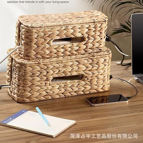물연근 밀짚 삽입형 보관함 데스크탑 라우터 케이블 정리 바구니 뚜껑이 있는 종이 상자 보관 바구니스토어 가기