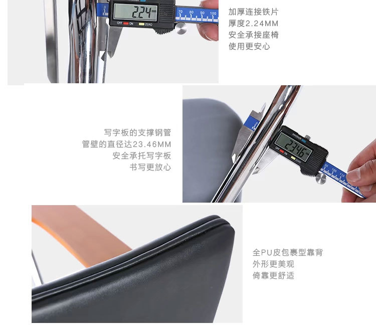 [产品描述] 此金属折叠椅的坐垫由加粗钢管、加厚贴片环绕承托,优选材质,坚固耐用,座面上加厚软垫采用优质皮革以及高密度海绵,适合家庭,办公,培训,会议,展会,演唱会等多种场所。更是学校、企事业单位、淘宝大卖家折叠椅的选择。