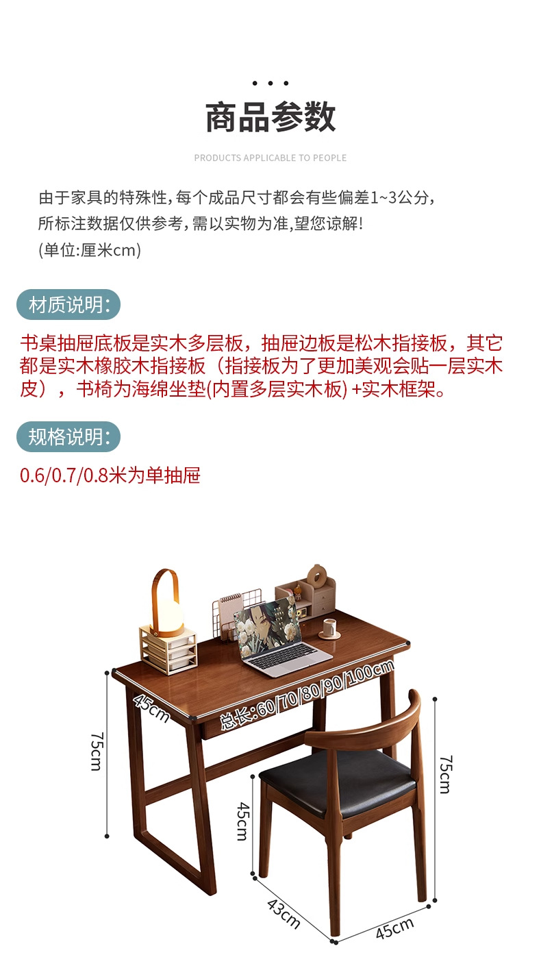 단단한 나무 책상 45cm 와이드 및 좁은 테이블 작은 아파트 학생 홈 학습 테이블 침실 간단한 컴퓨터 책상 사무실 책상
