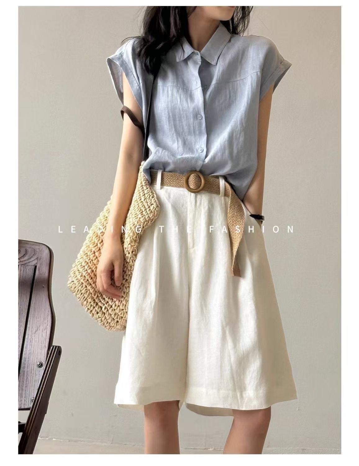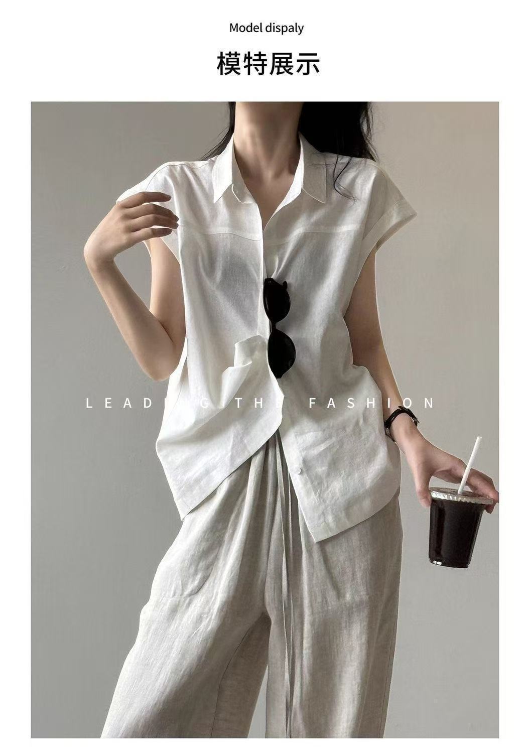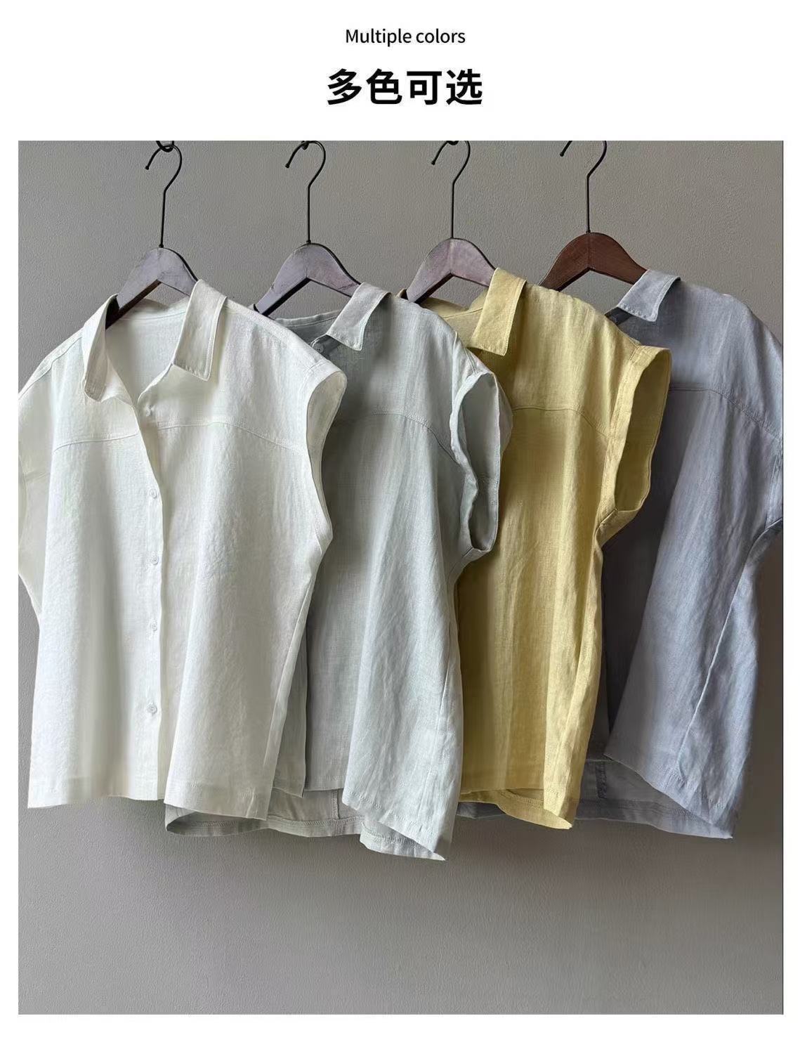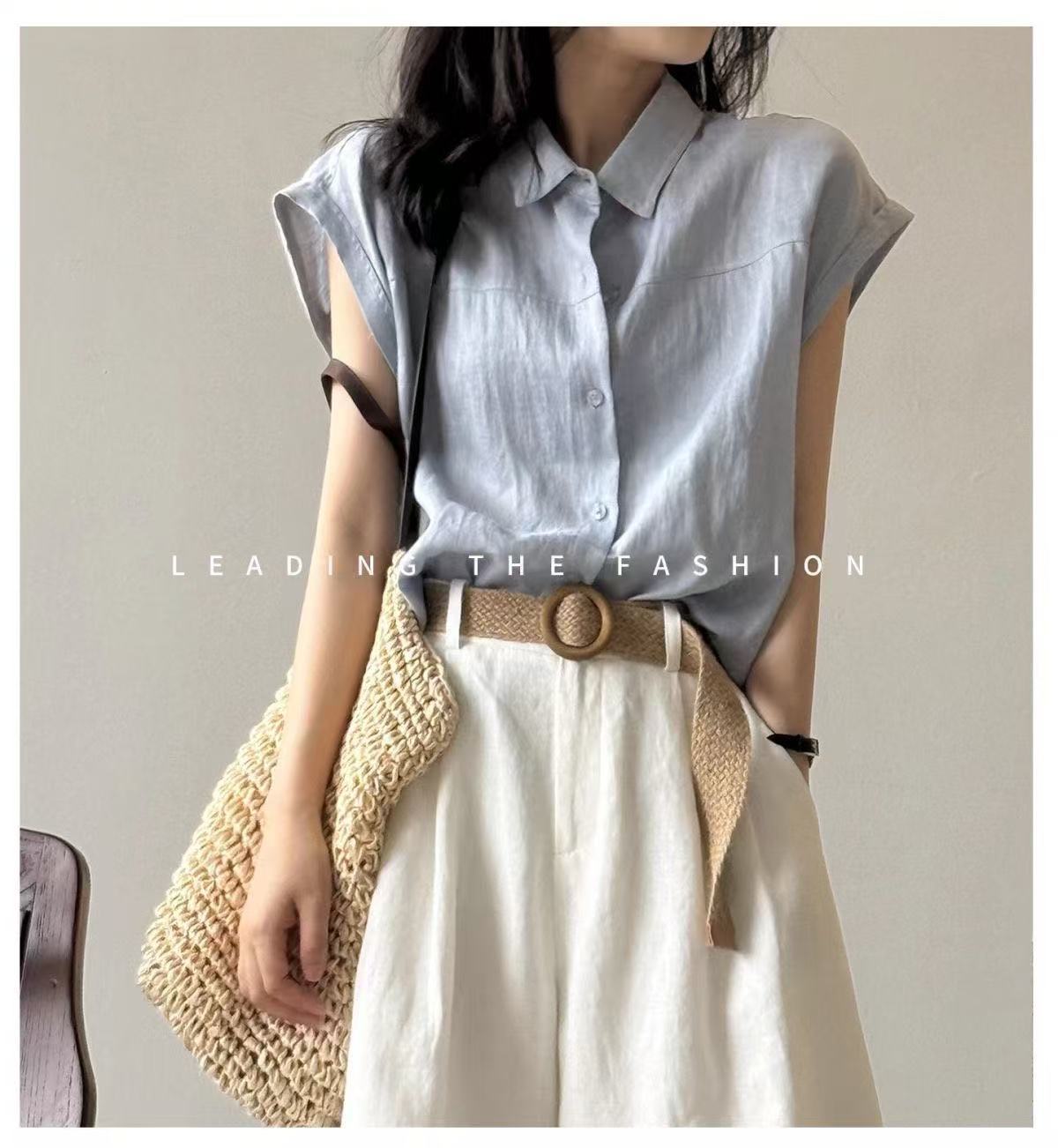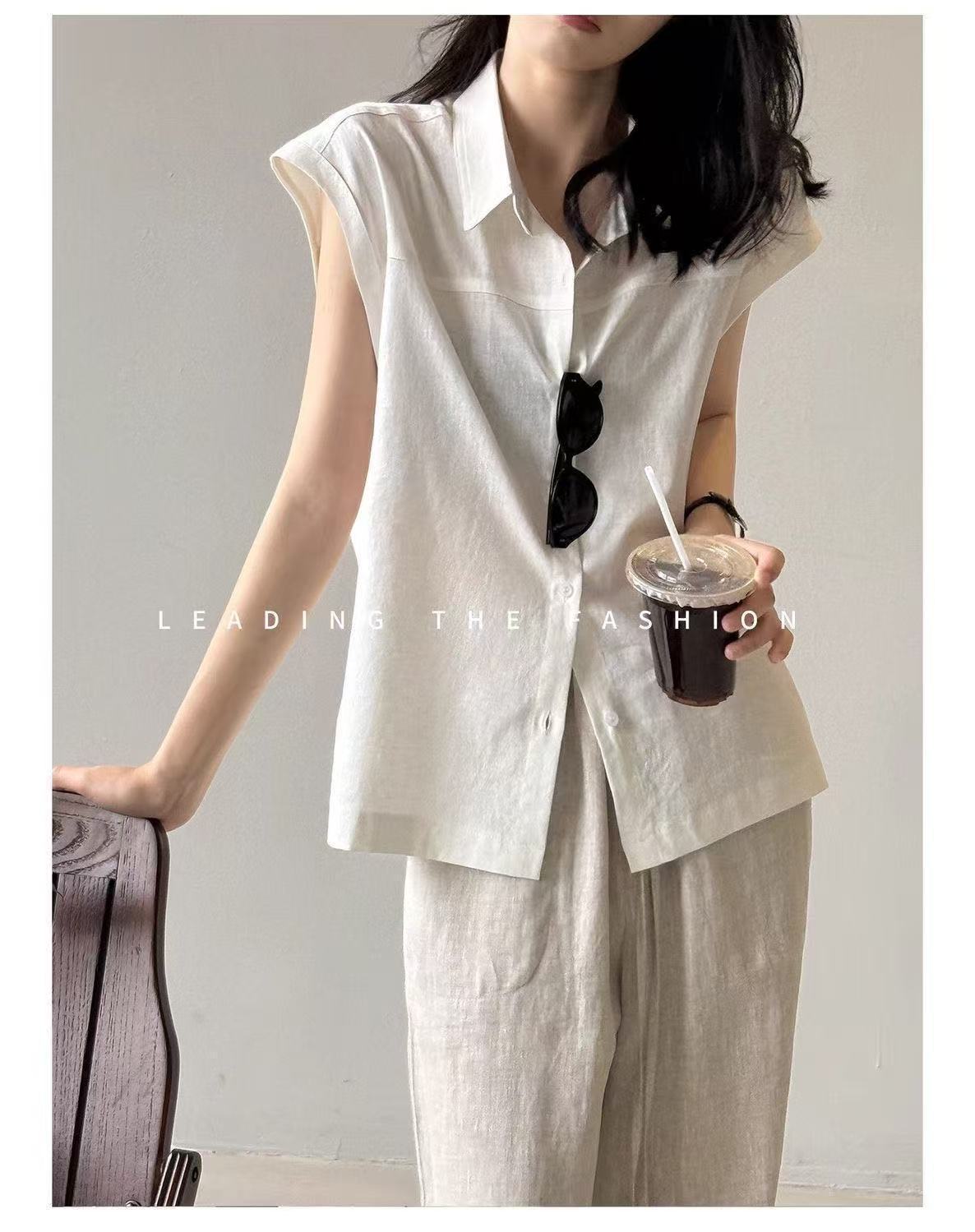 2025 여름 새로운 솔리드 컬러 민소매 스퀘어 넥 린넨 코튼 탑 레트로 코튼 린넨 여성 민소매 조끼 셔츠 여성 트렌드