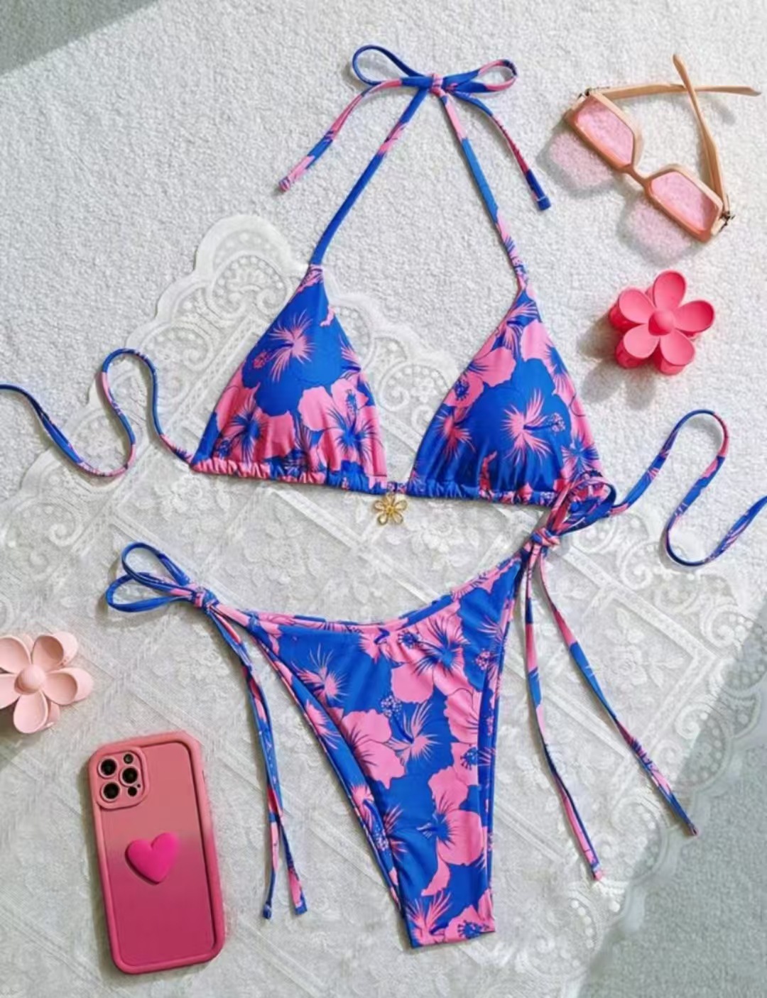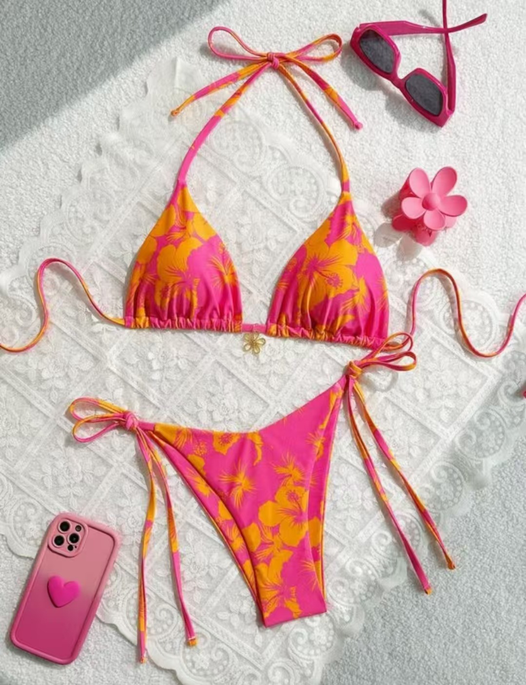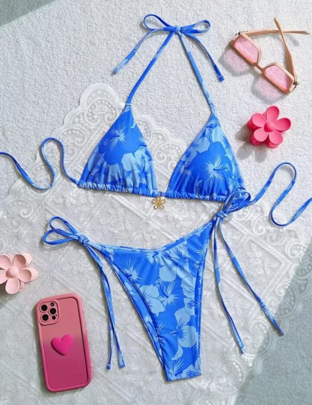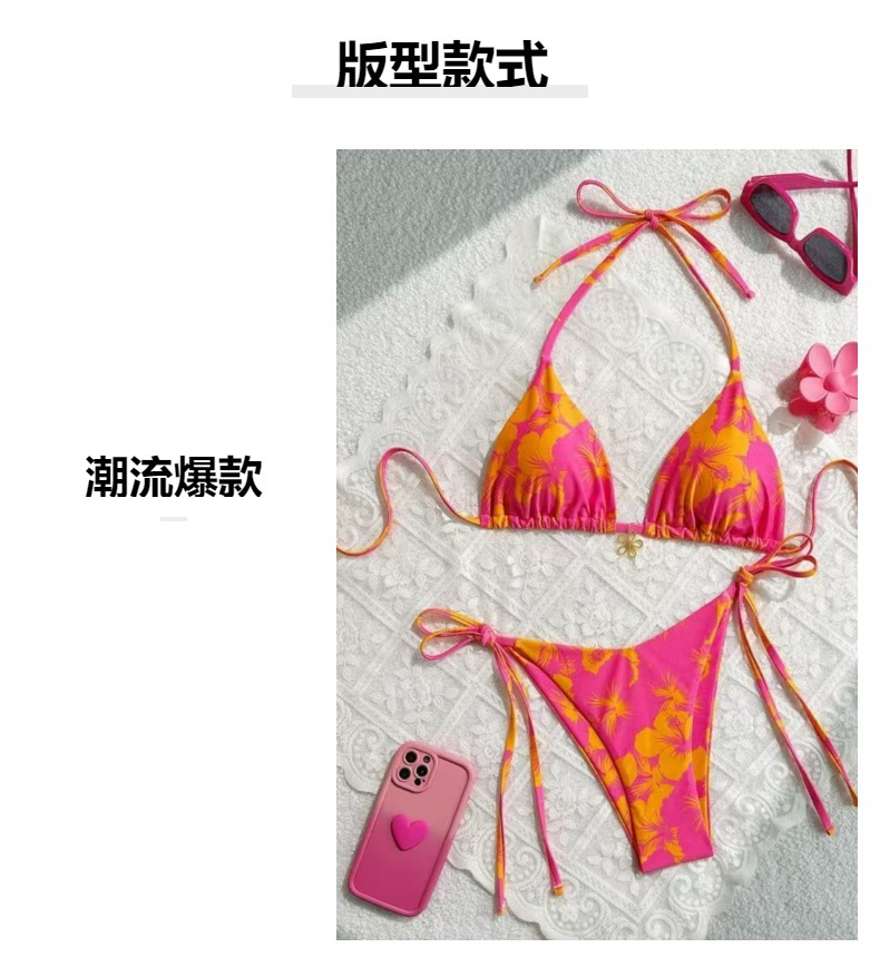 2025 유럽과 미국의 국경 간 새로운 레이스 업 프린트 수영복 비키니 여성용 고급 스플릿 투피스 수영복 세트스토어 가기
