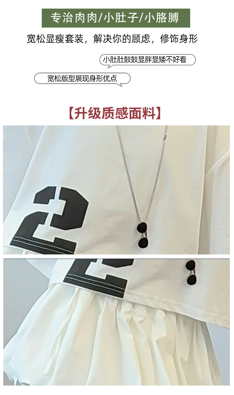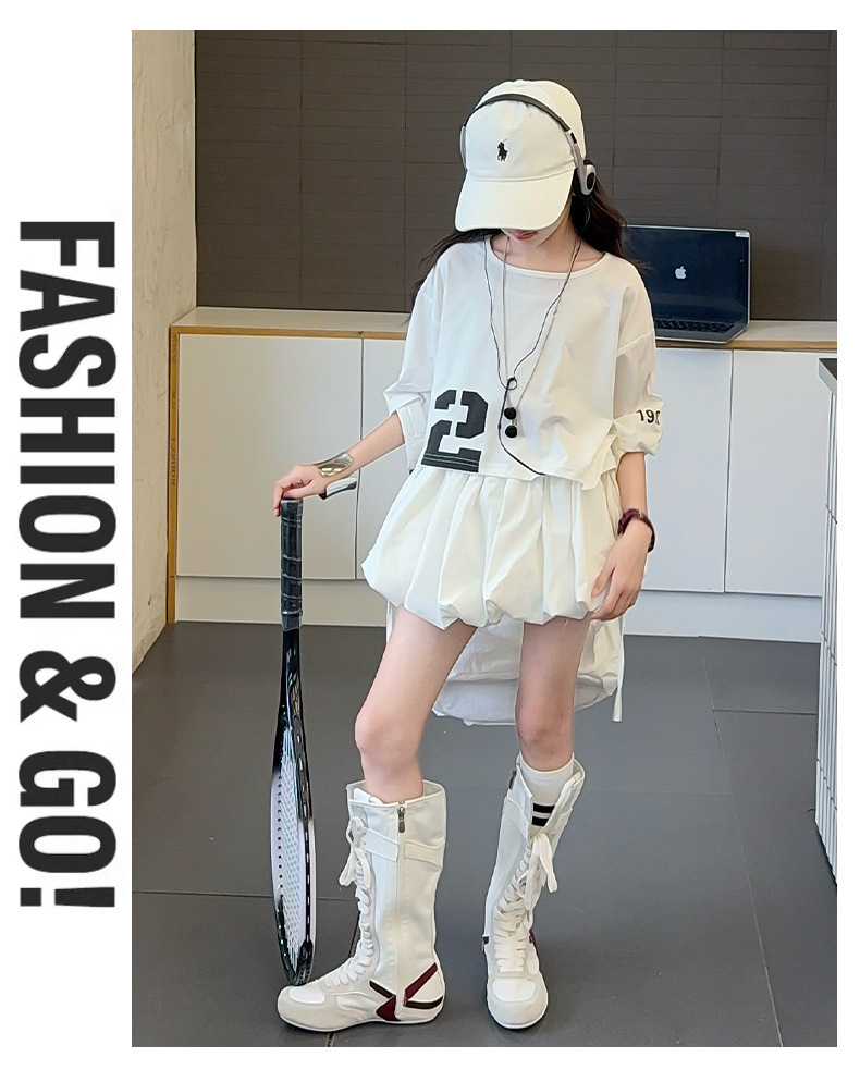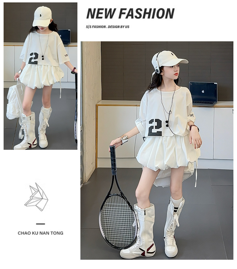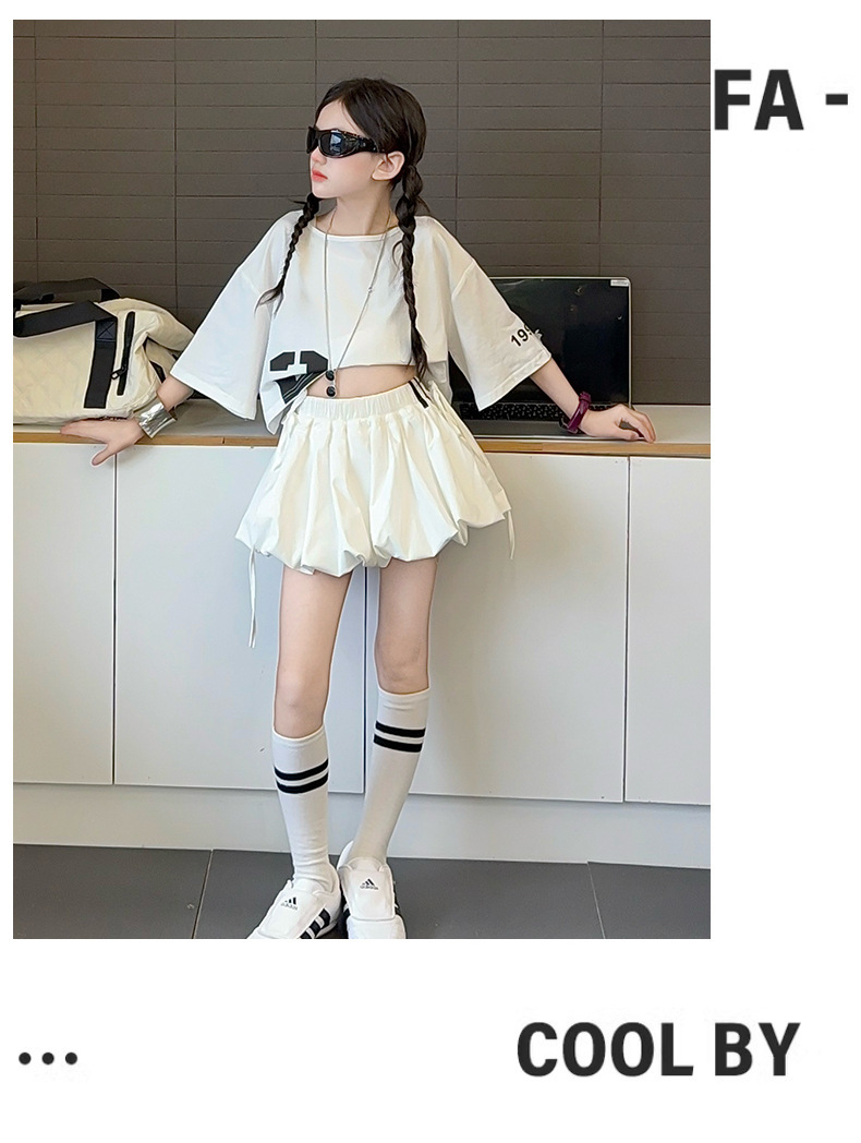 여자 여름 짧은 티셔츠 세트 2025 새로운 여름 스타일 중대형 어린이 유행 흰색 버블 스커트 투피스 세트