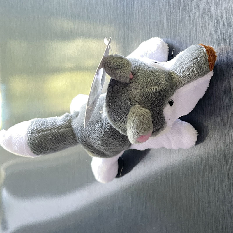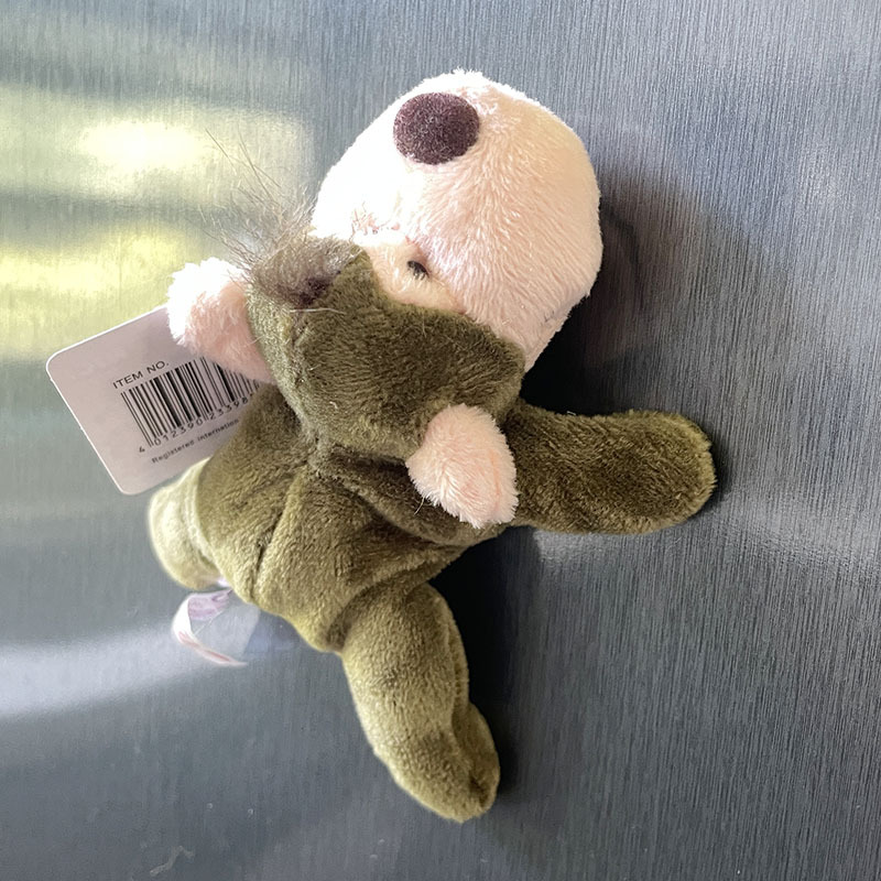 材质:超柔短毛绒头部填充PP棉,玩偶脚内置吸力磁铁(可以吸附在铁制品表面)