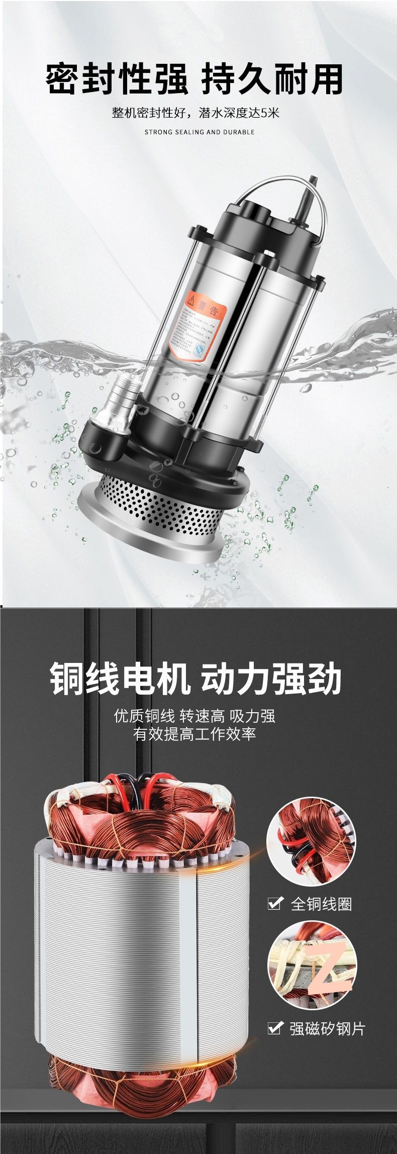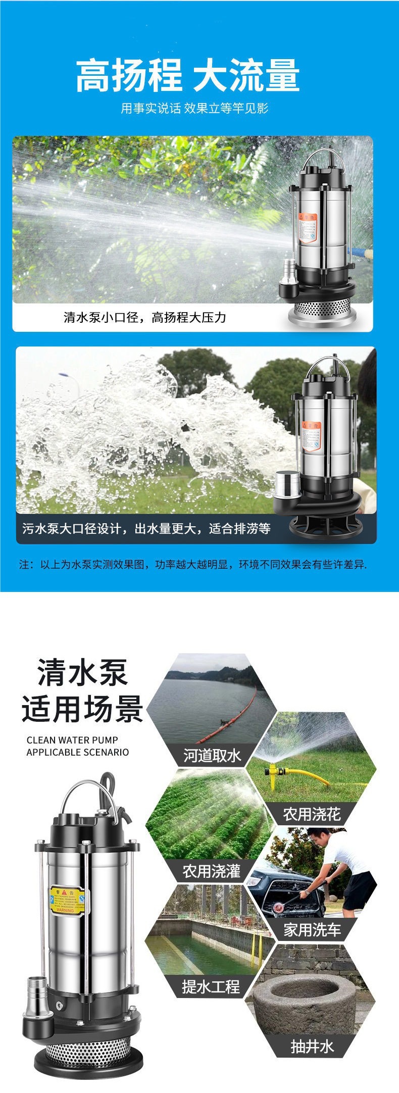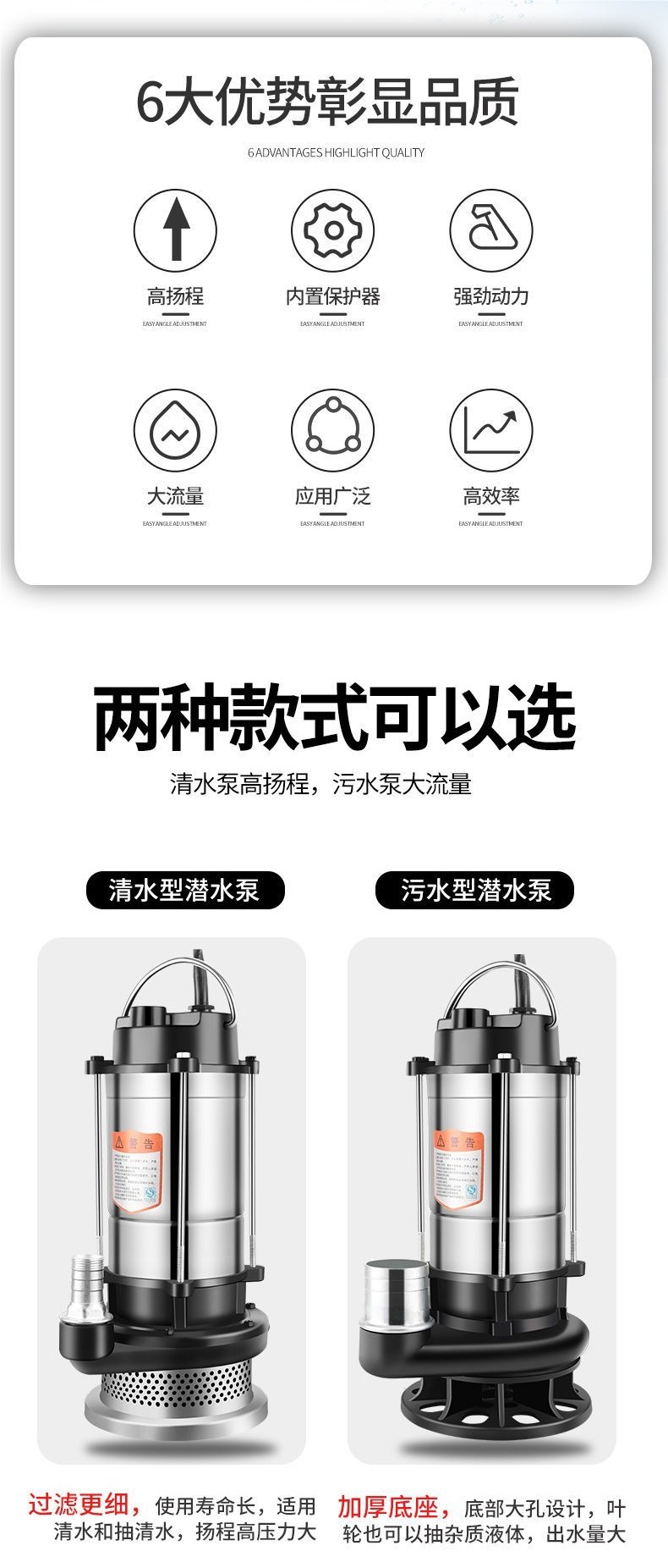 가정용 수중 펌프 인치 소형 워터 펌프 흡수 고 승격 가정용 우물 물 농업용 깨끗한 물 하수 펌프