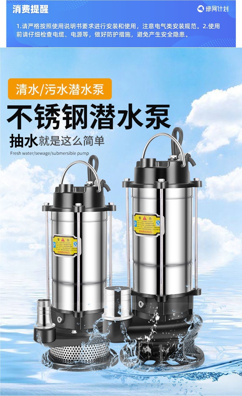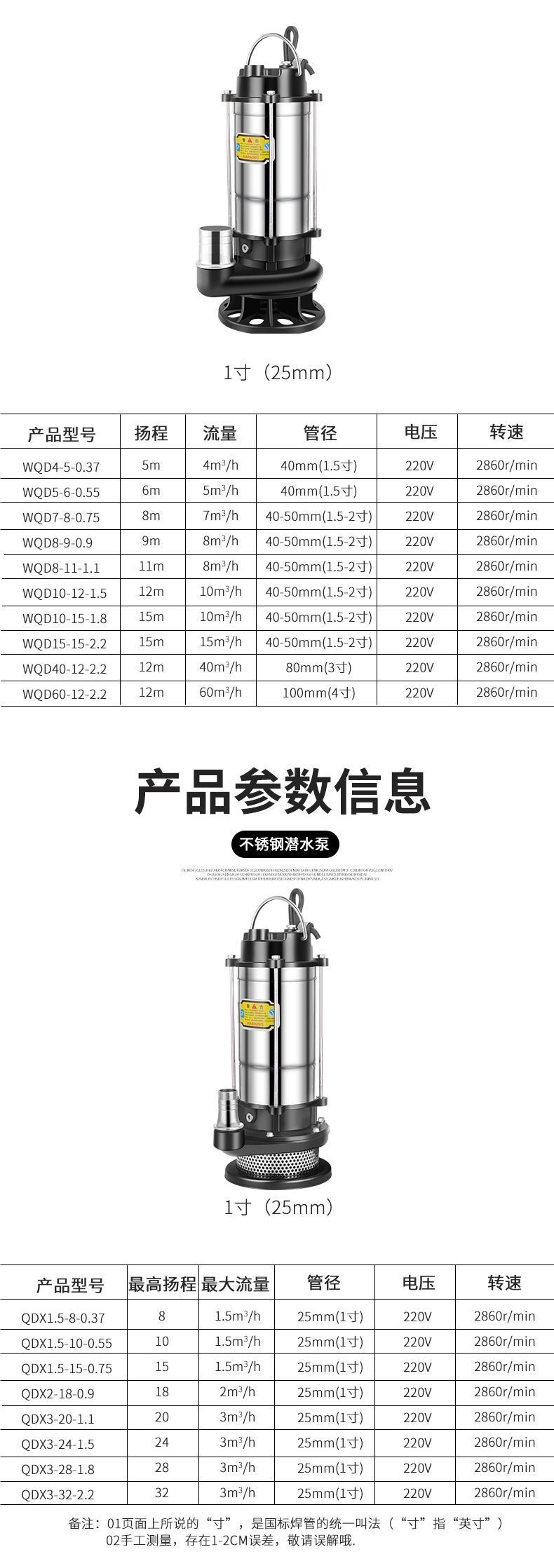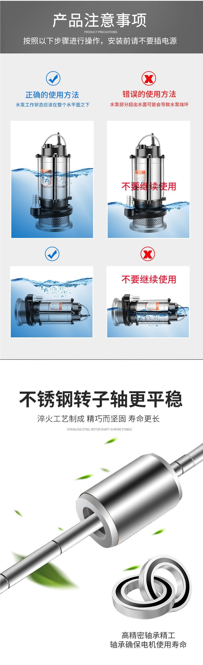 가정용 수중 펌프 인치 소형 워터 펌프 흡수 고 승격 가정용 우물 물 농업용 깨끗한 물 하수 펌프