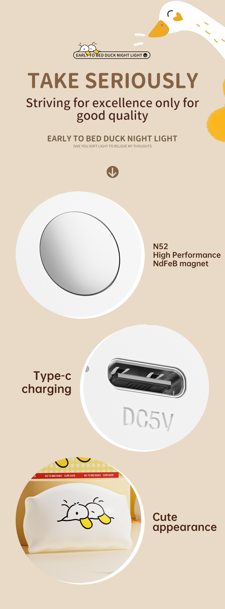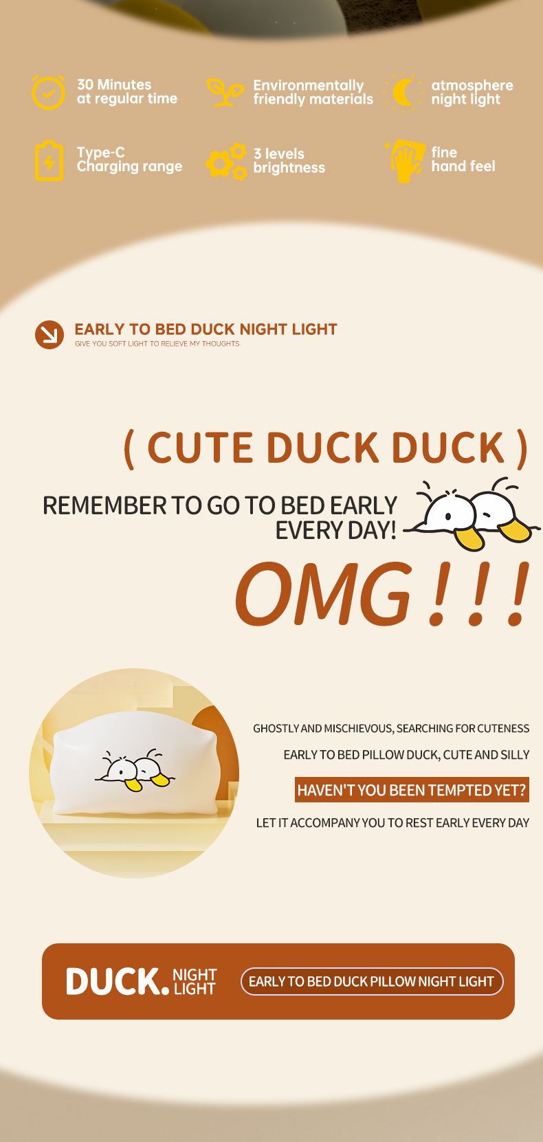 • [영어 모델] ZHL001 조기 수면 베개 오리 야간 조명