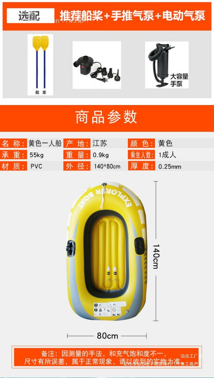 • 노란색 1인용 보트(패들 1쌍 포함) 및 무료 핸드 펌프