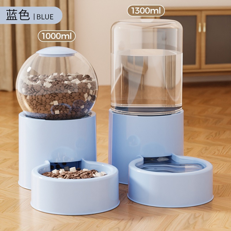 • 고양이 애완동물 급식기 세트 [파란색 구형 + 파란색 원통형]