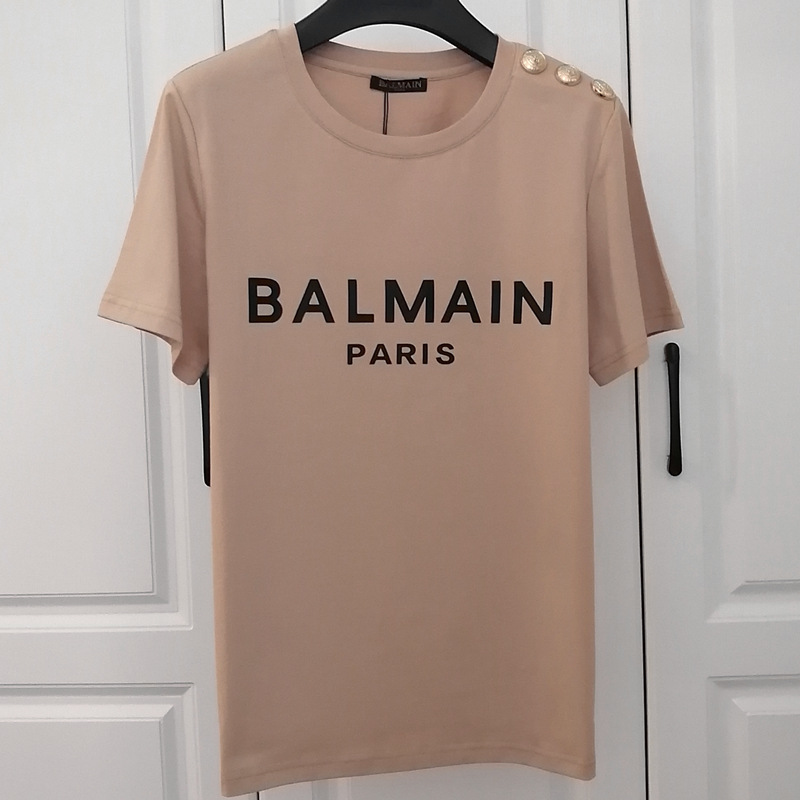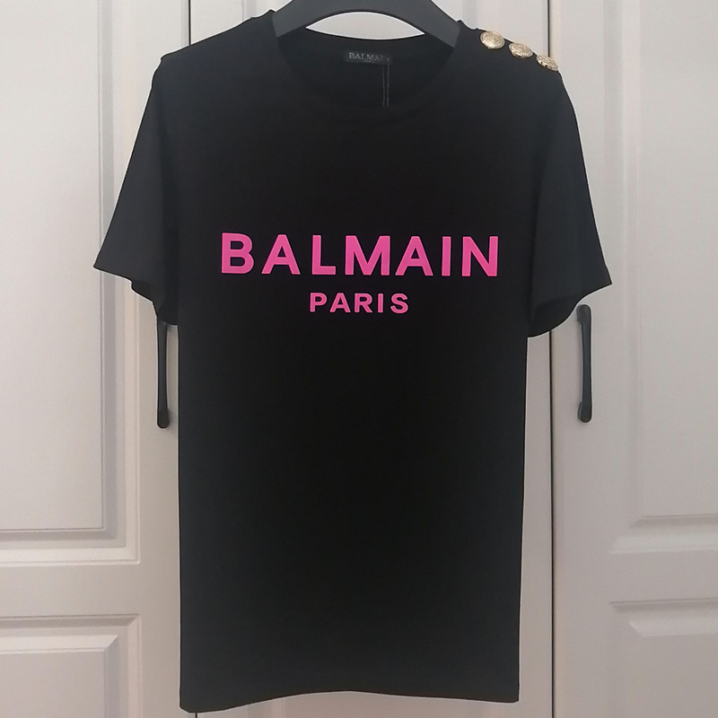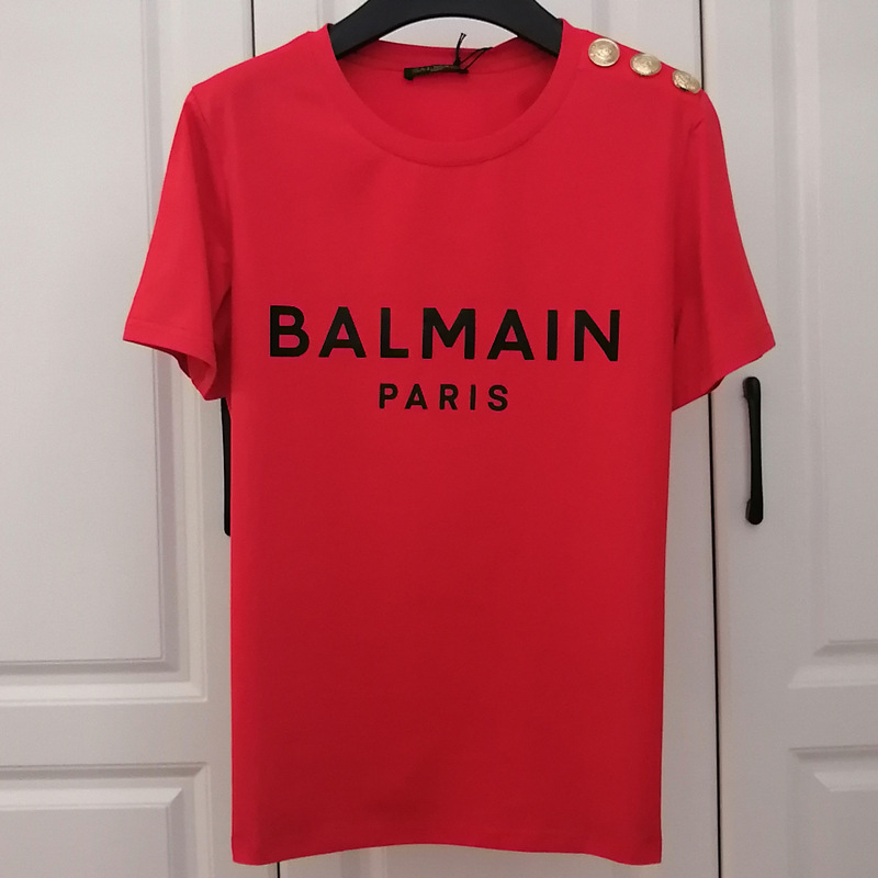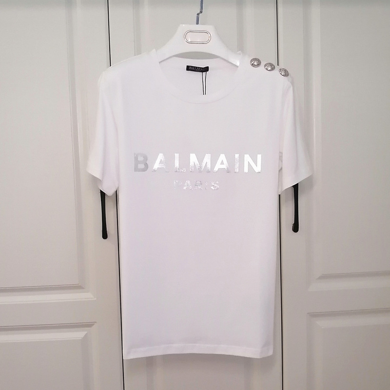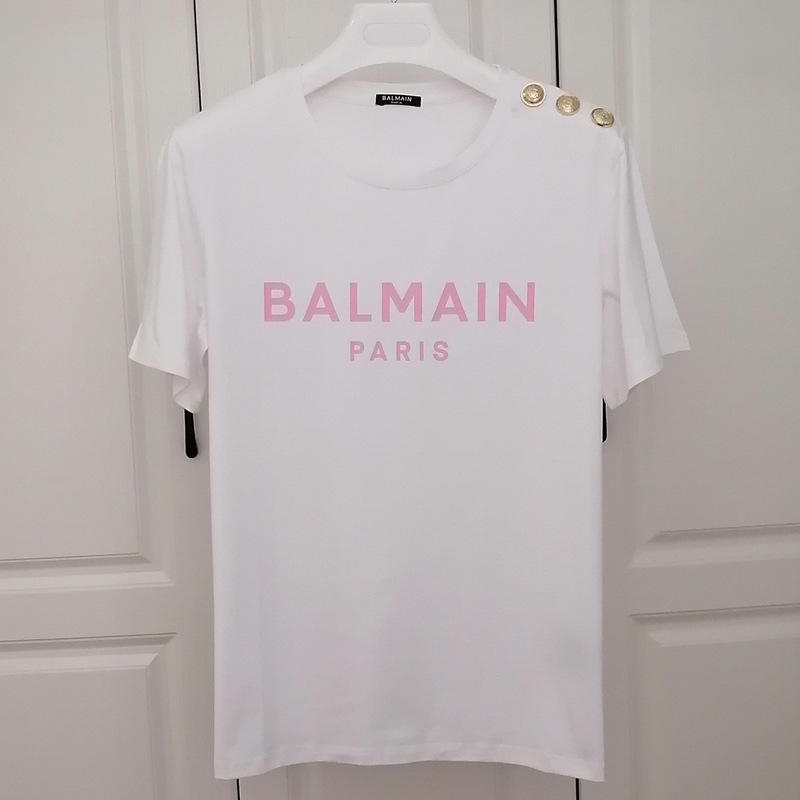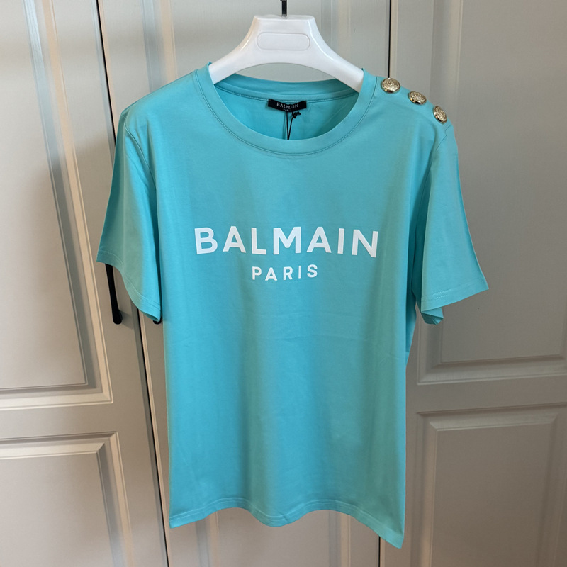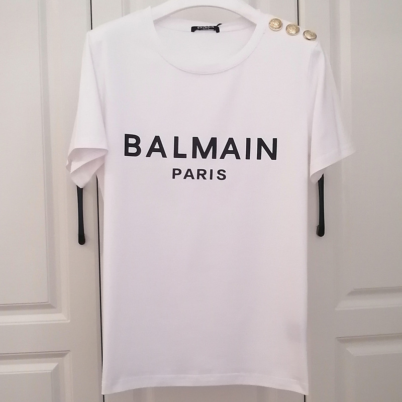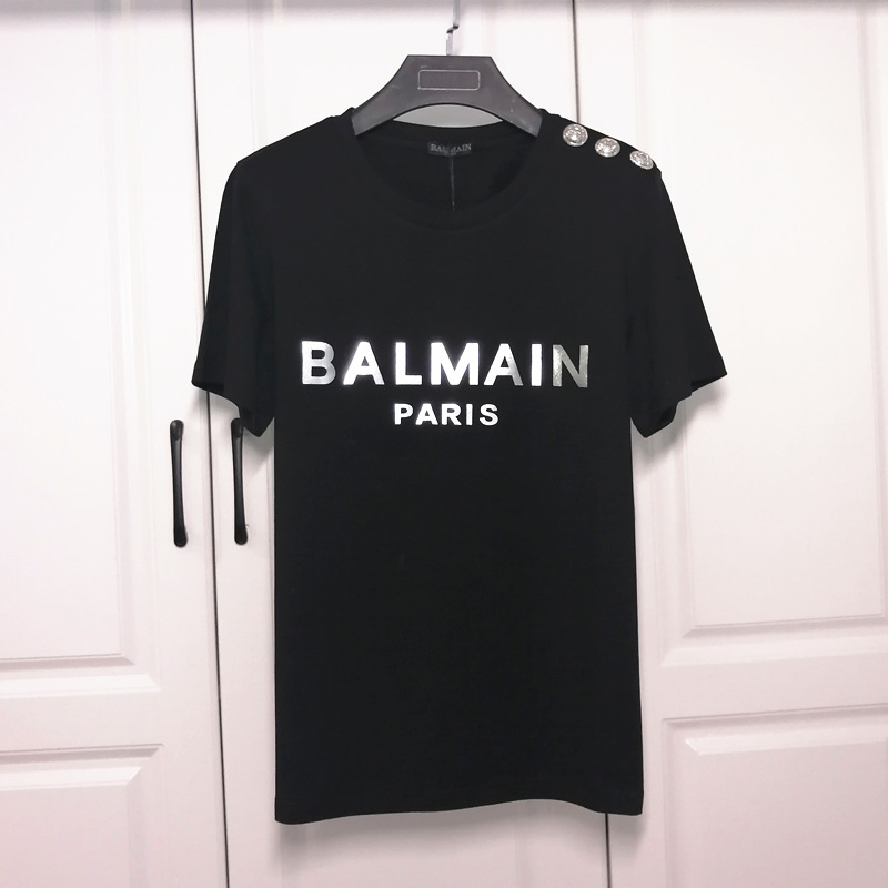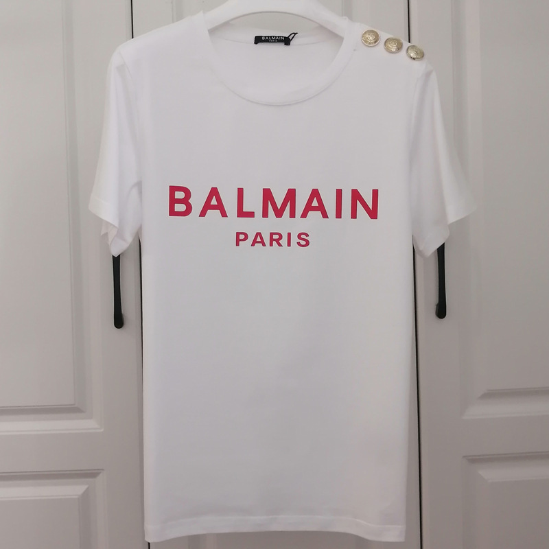 발망 티셔츠 핫 스탬핑 프린트 레터 봄 여름 신작 반팔 코튼 숄더 골드 버클 발망 패션 여성 의류스토어 가기