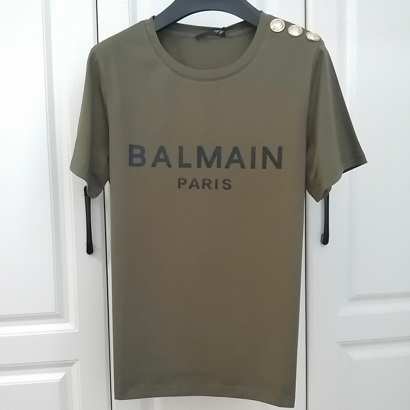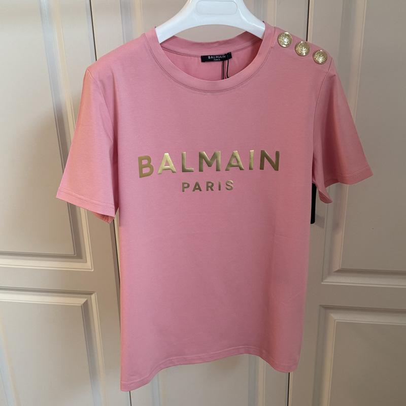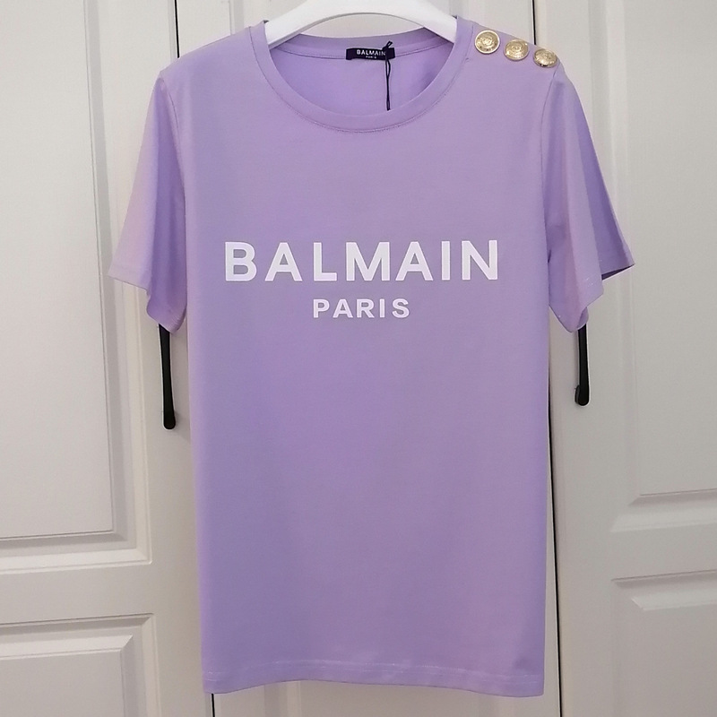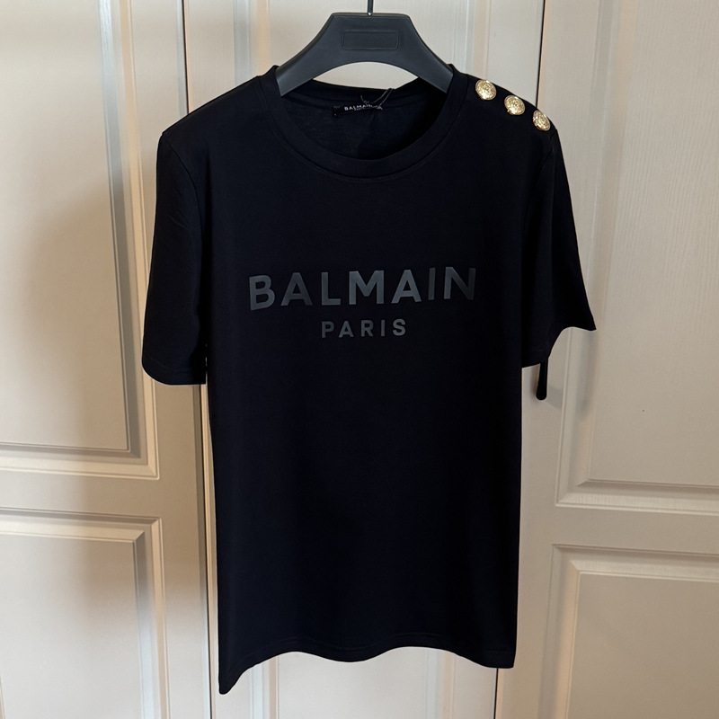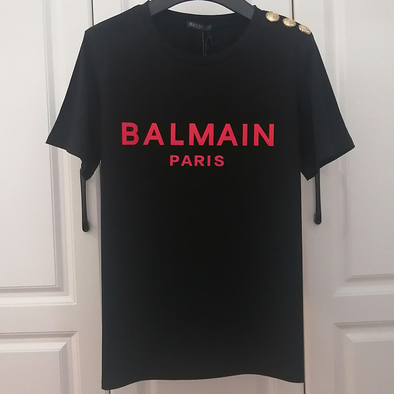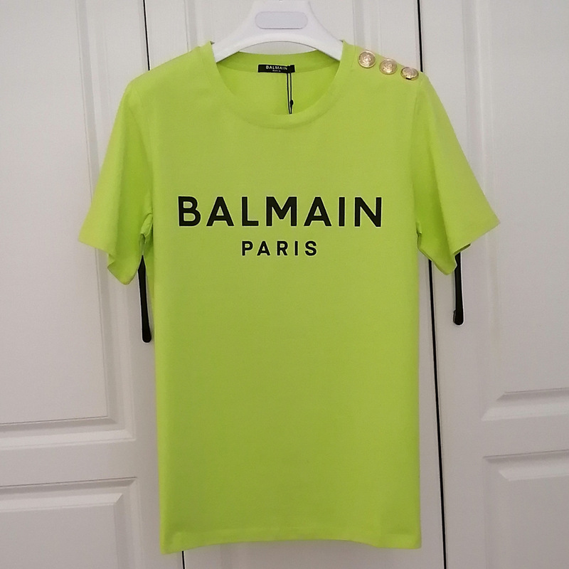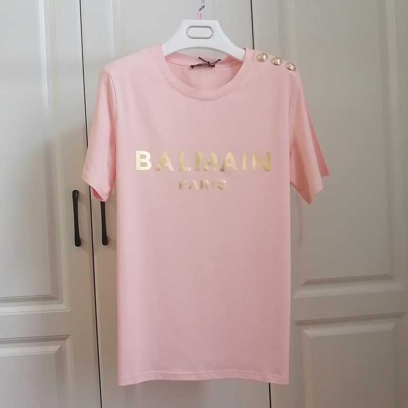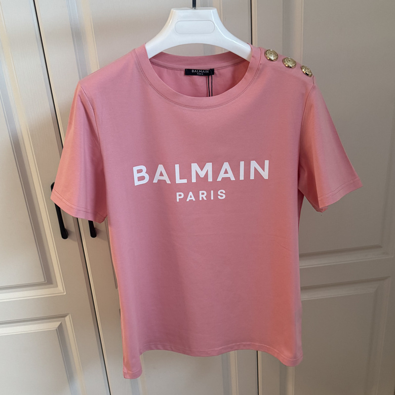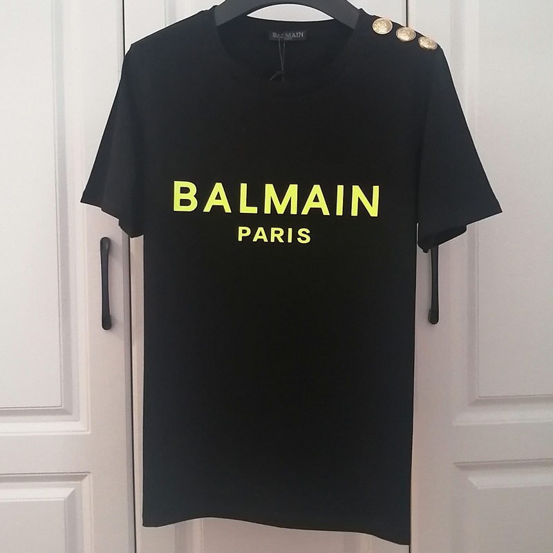 발망 티셔츠 핫 스탬핑 프린트 레터 봄 여름 신작 반팔 코튼 숄더 골드 버클 발망 패션 여성 의류스토어 가기