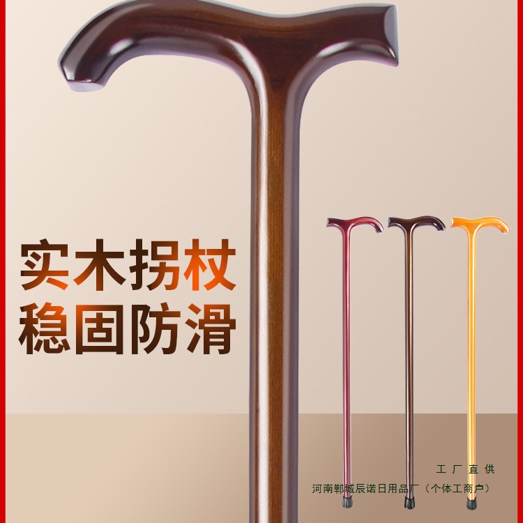 노인용 지팡이, 일체형 원목 지팡이, 노인용 지팡이, 경량 미끄럼 방지 기둥 지팡이, 목재 보행 지팡이