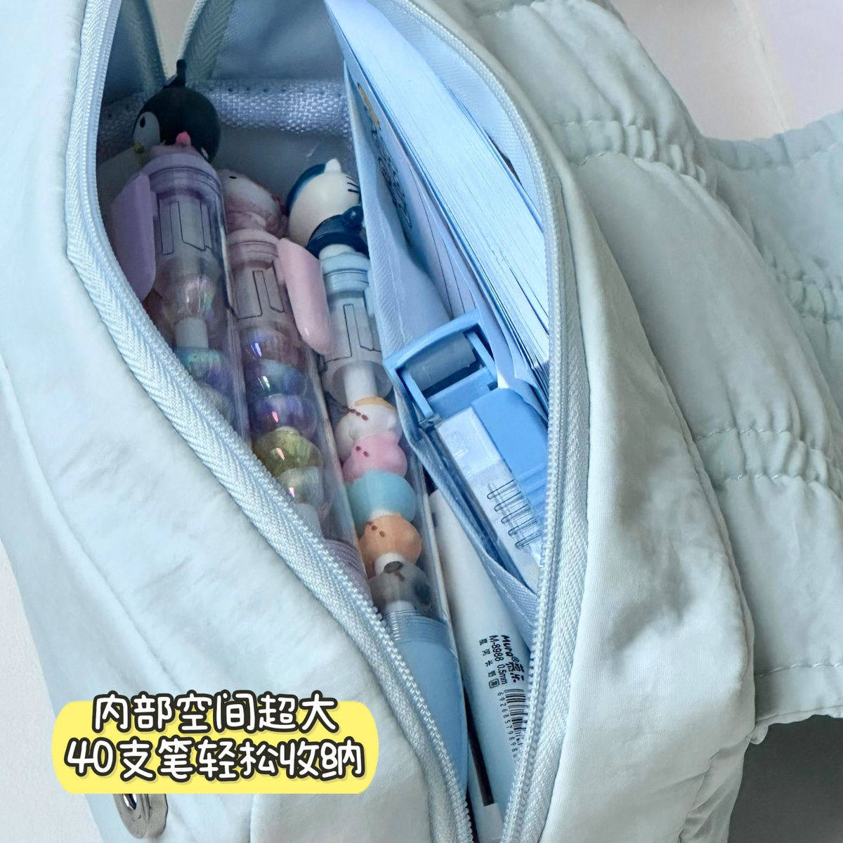 Xiaohongshu의 같은 스타일 ins 스타일 밀크 블루 보우 발레 펜 가방 학생의 고급스러운 대용량 문구 보관 가방