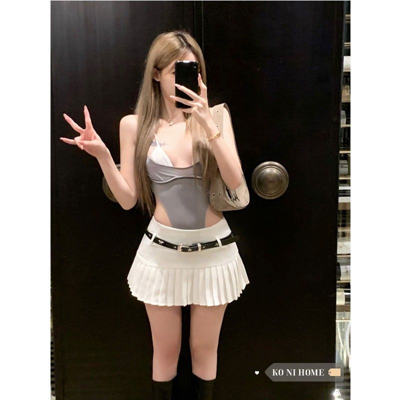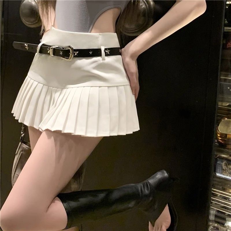 화이트 플리츠 신상 하프 스커트 여름 신작 핫걸 초단 스플리싱 슬리밍 힙 커버 스커트
