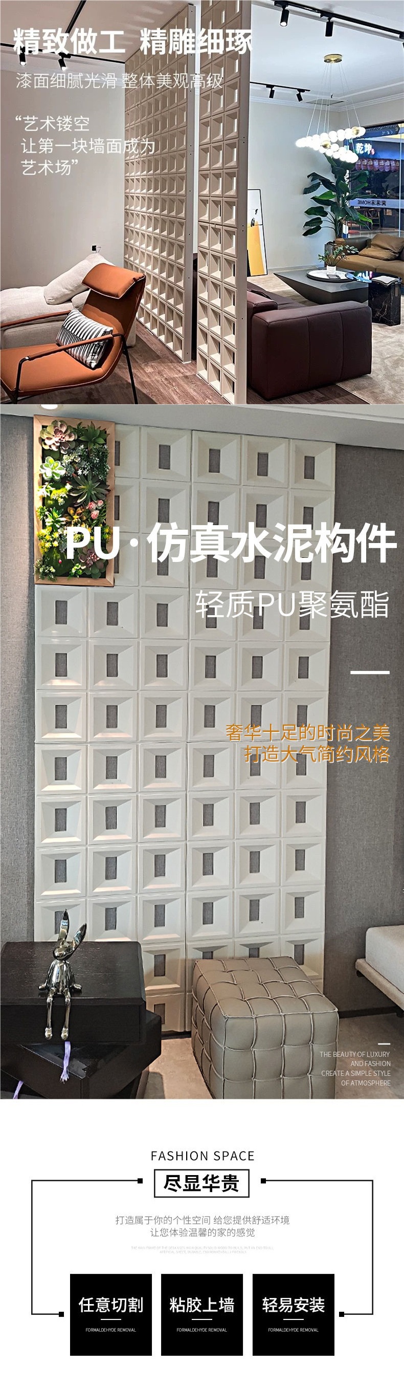 ABS Jiugongge 중공 벽돌 양면 칸막이 벽 PU 구성 요소 벽돌 장식 배경 벽 경량 중공 다공성 벽돌