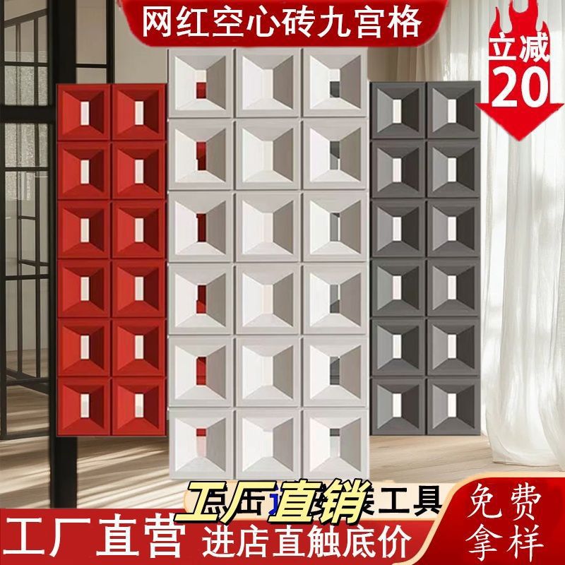 ABS Jiugongge 중공 벽돌 양면 칸막이 벽 PU 구성 요소 벽돌 장식 배경 벽 경량 중공 다공성 벽돌스토어 가기