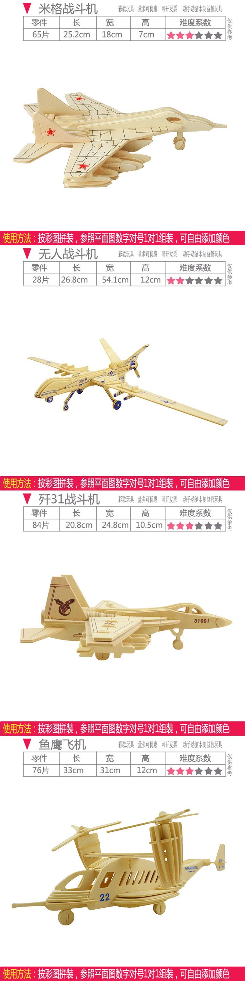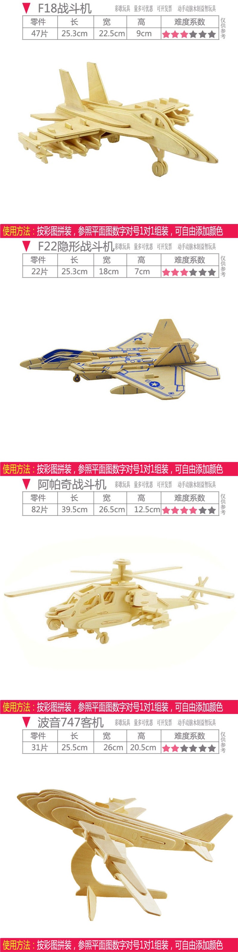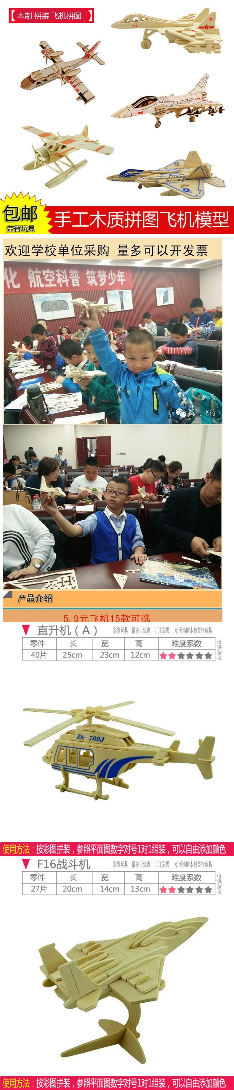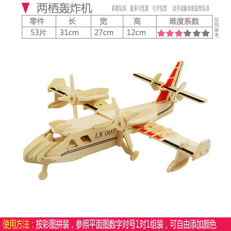 수동 조립 항공기 모델 목조 어린이 3D 퍼즐 교육 장난감 시뮬레이션 전투기 모델스토어 가기