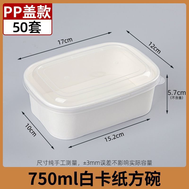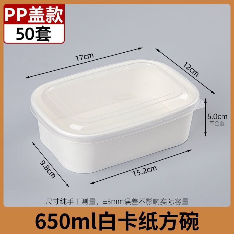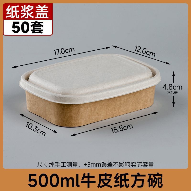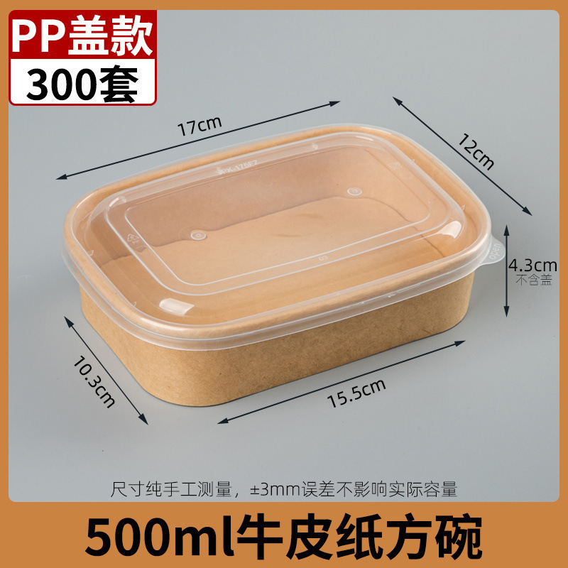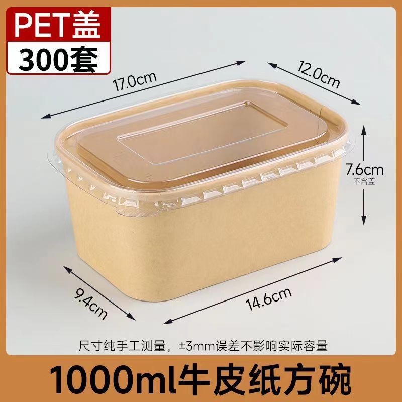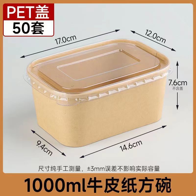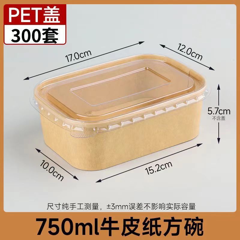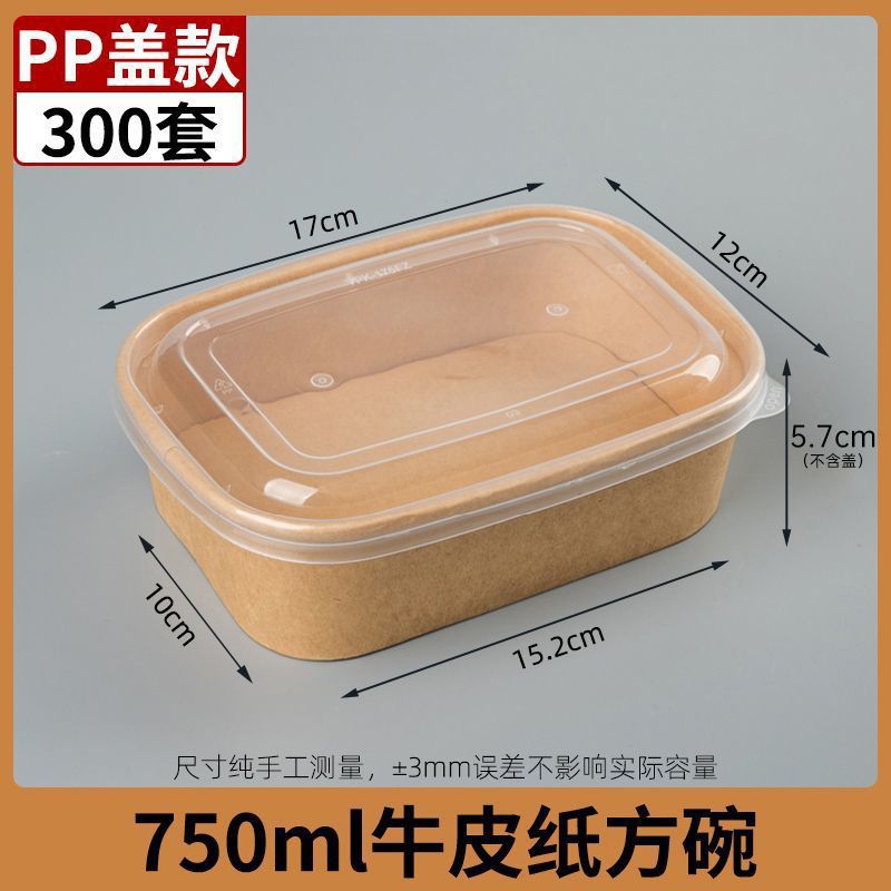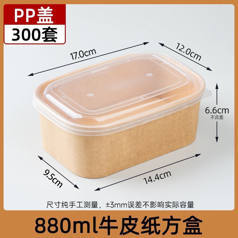 일회용 크래프트 종이 직사각형 패스트 푸드 상자 포장 상자 플라스틱 뚜껑 도시락 볶음밥 테이크 아웃 상자 세트