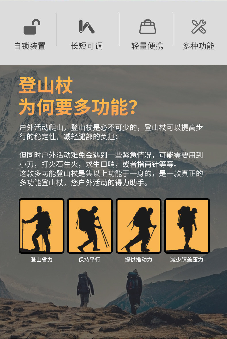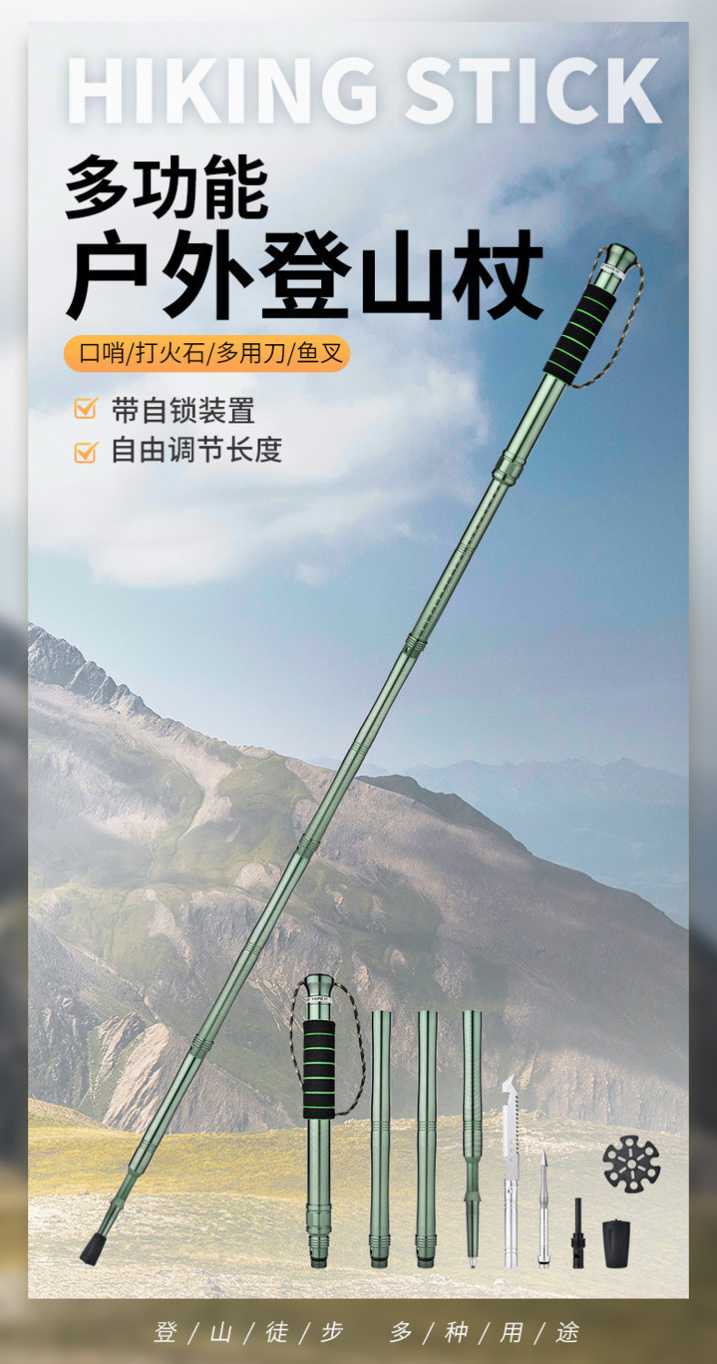 Dituo 전문 야외 하이킹 스틱 초경량 텔레스코픽 접이식 지팡이 등산 다기능 하이킹 장비 자기 방어스토어 가기