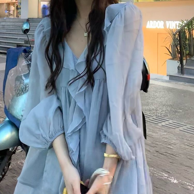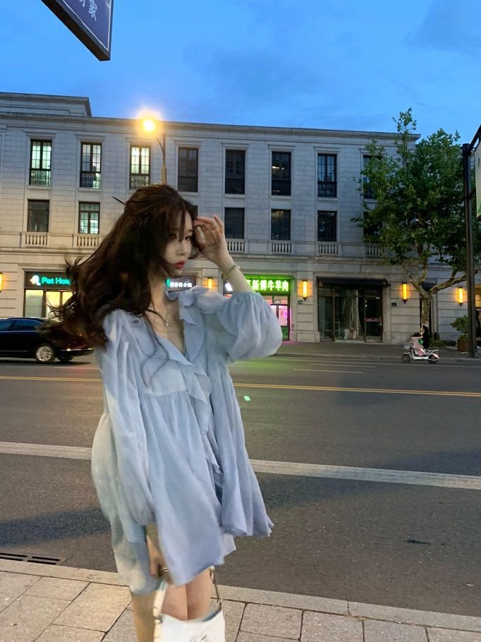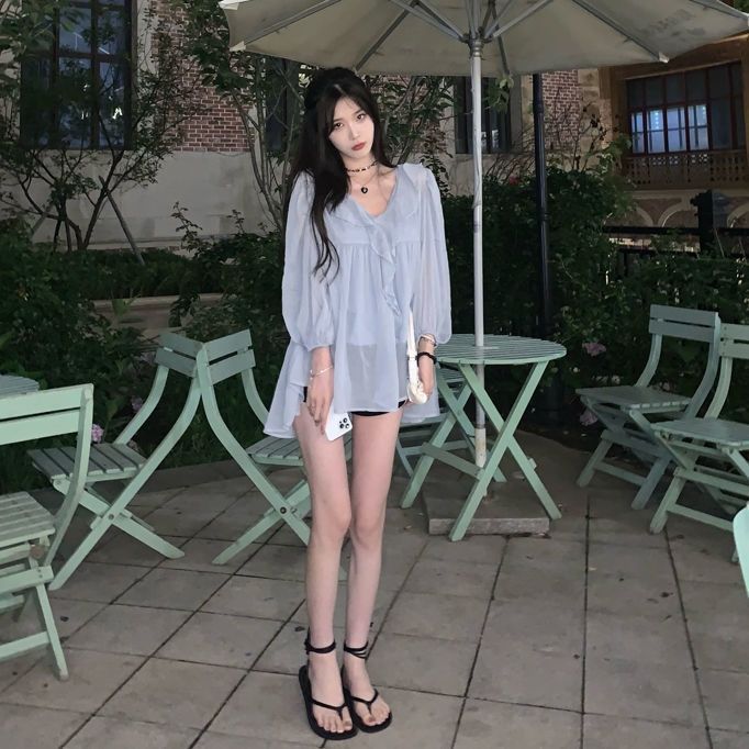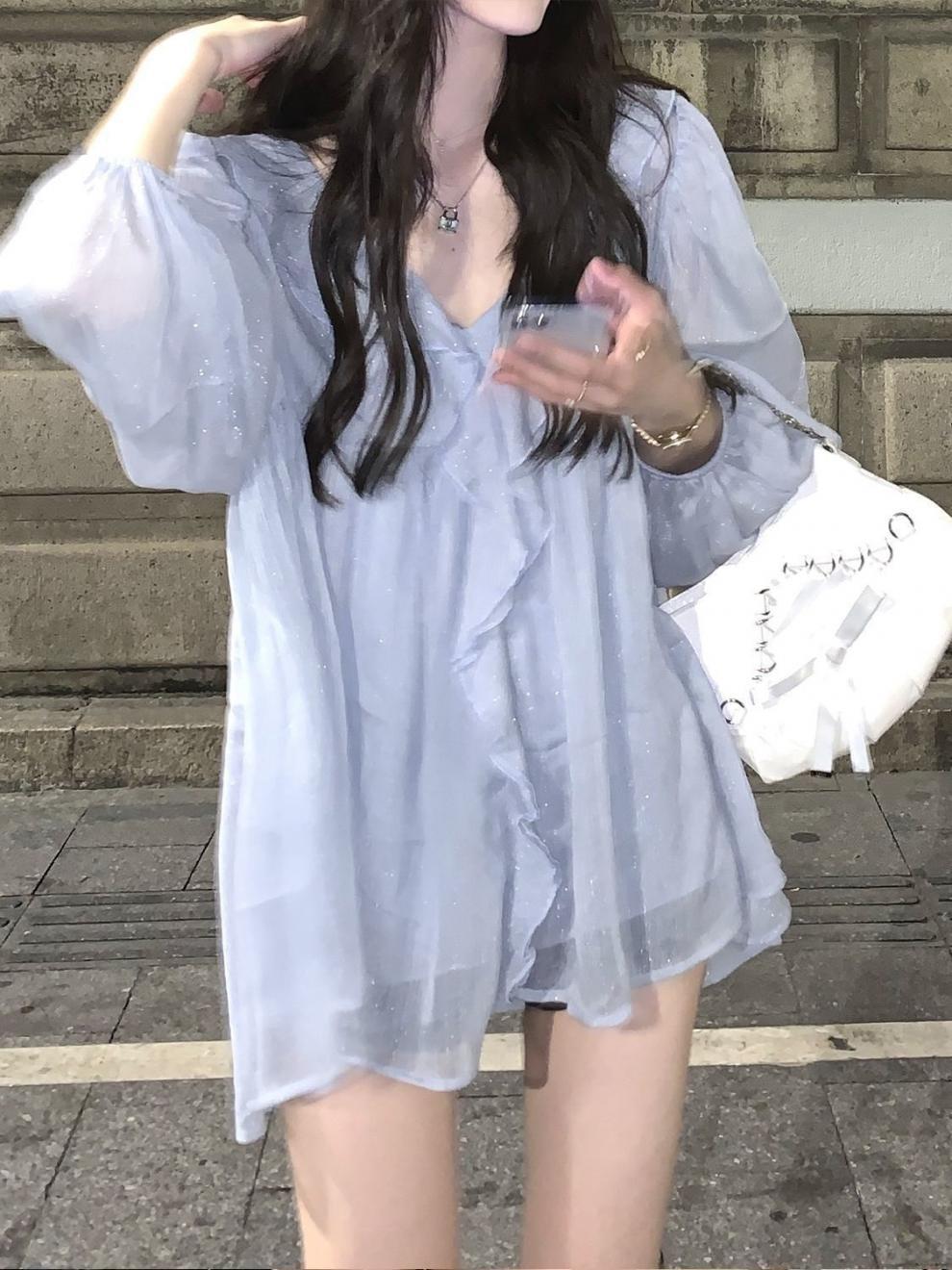 여성을 위한 새로운 달이 뜨는 별 하늘 러플 쉬폰 셔츠, 퓨어 러블리 스타일 긴팔 셔츠, 여름 디자인 셔츠, 시크 탑스토어 가기