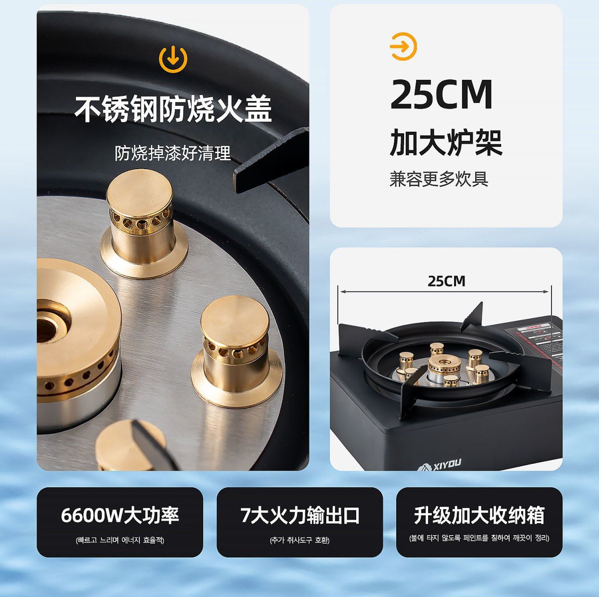 • [7성 맹렬한 난로] 블랙 - [7성 맹렬한 난로] 초대형 수납함 + 가스 8병