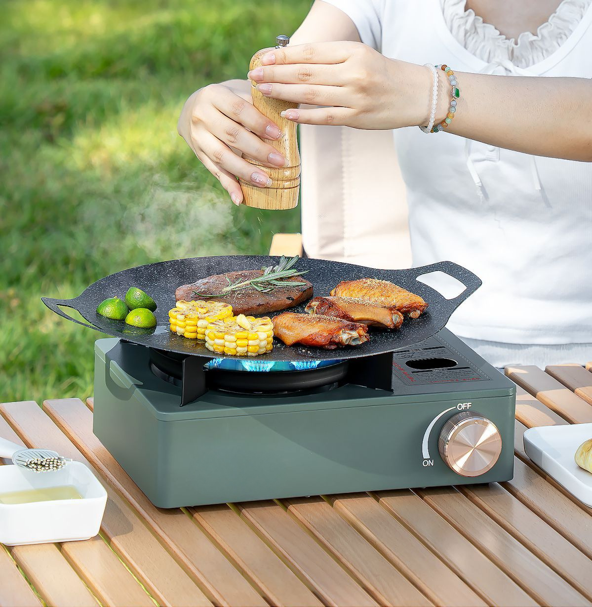• [7성 맹렬한 난로] 샌드 그린 - [7성 맹렬한 난로] 30CM 베이킹 팬 + 가스 4병