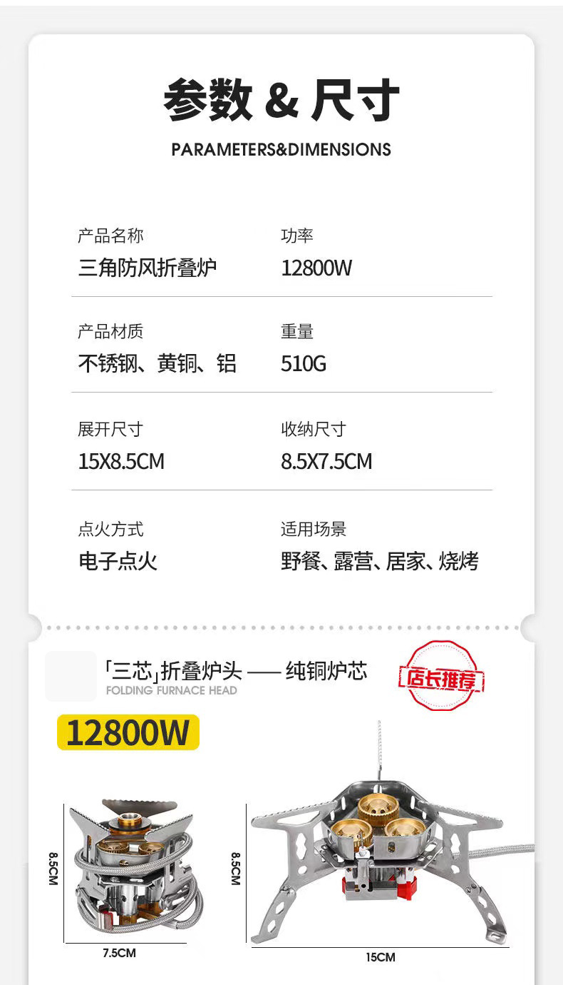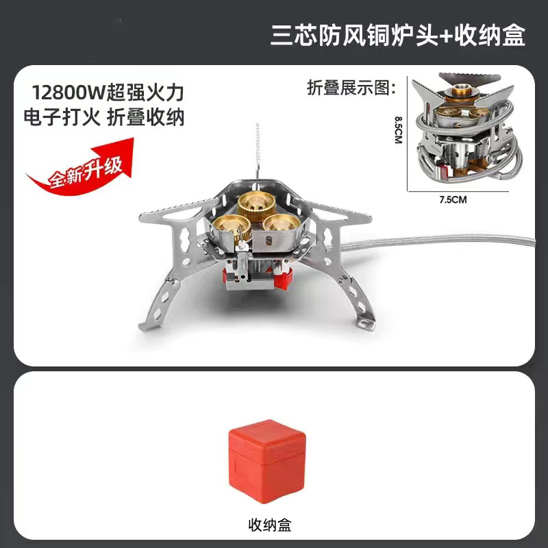 미니 방풍 삼구 스토브, 야외 휴대용 전자 점화 캠핑 스토브, 분할 가스 스토브, 접이식 스토브스토어 가기