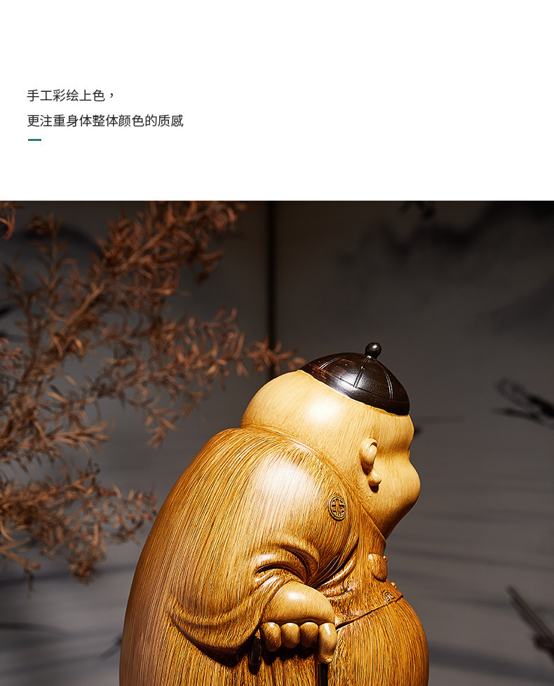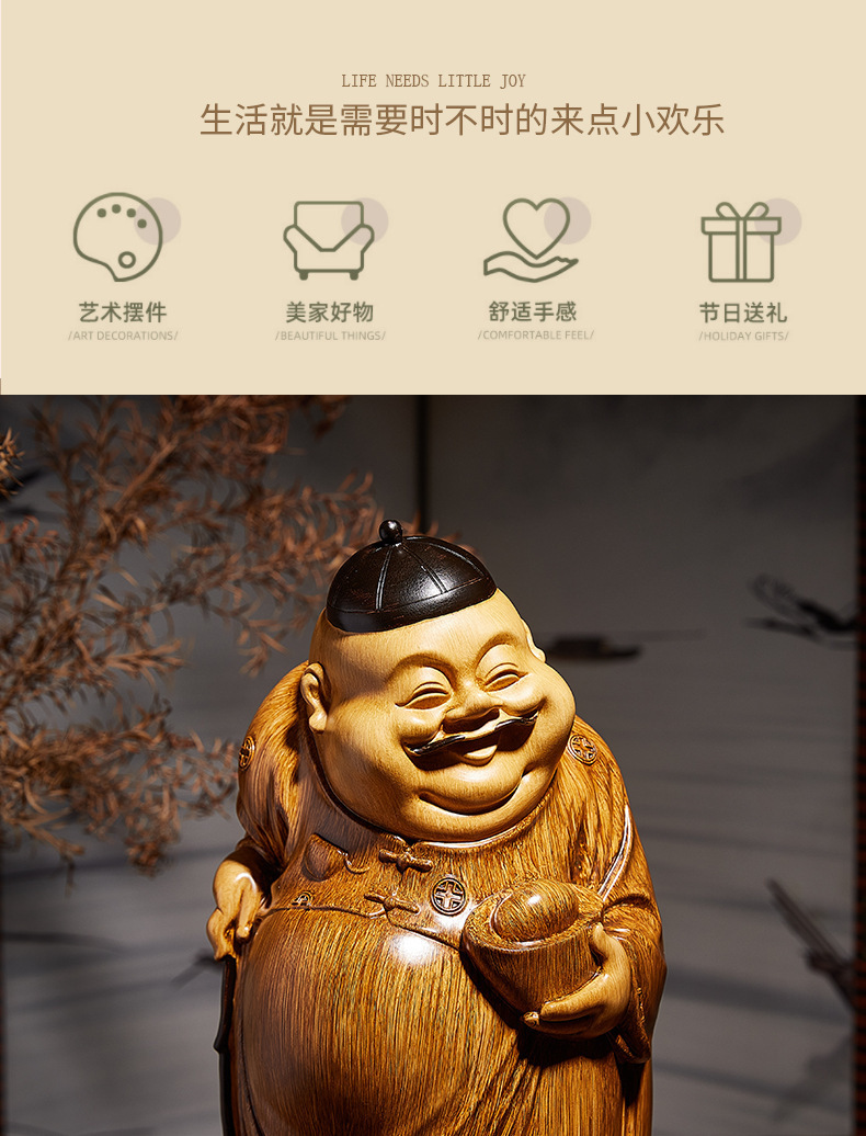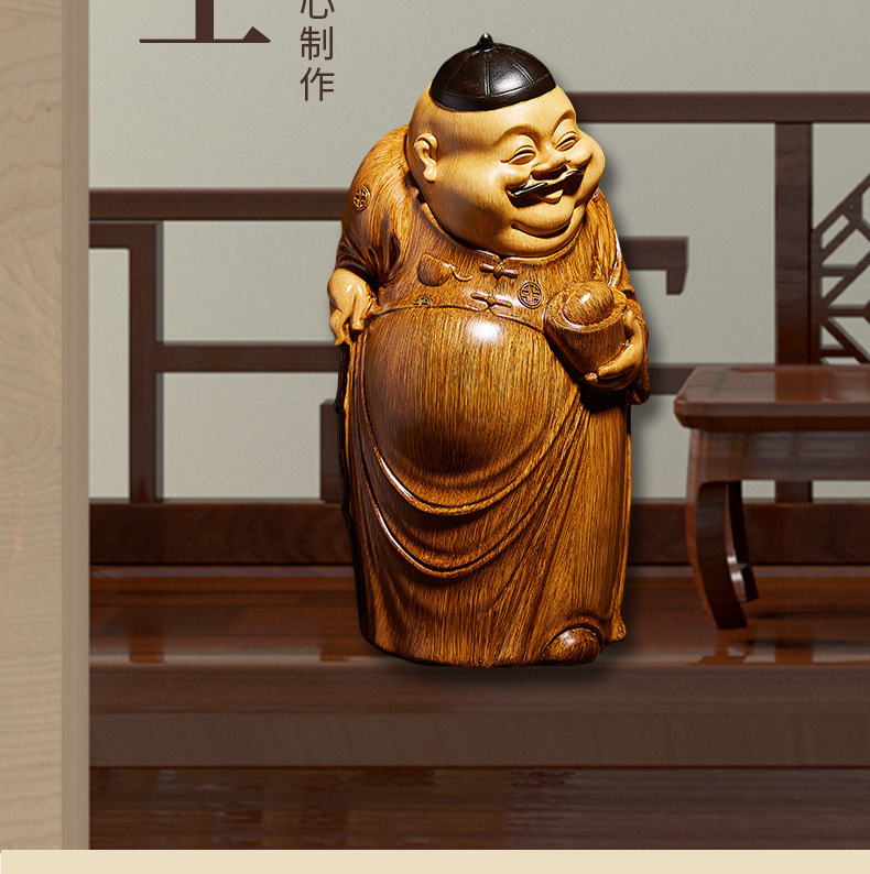 고급 중국식 주인 장식품, 거실 부의 신 조각품, 모조 목각 커피 테이블, 골동품 선반 장식, 데스크탑 장식스토어 가기