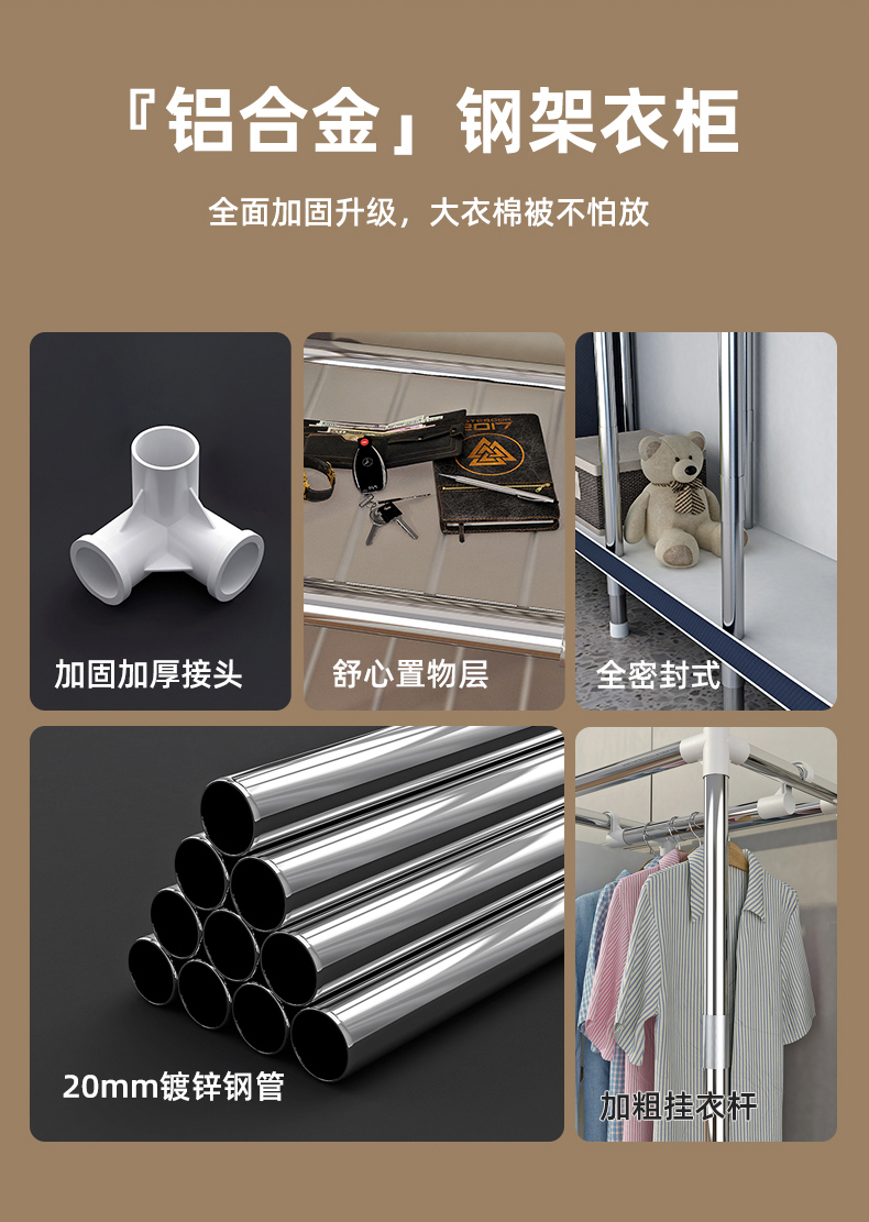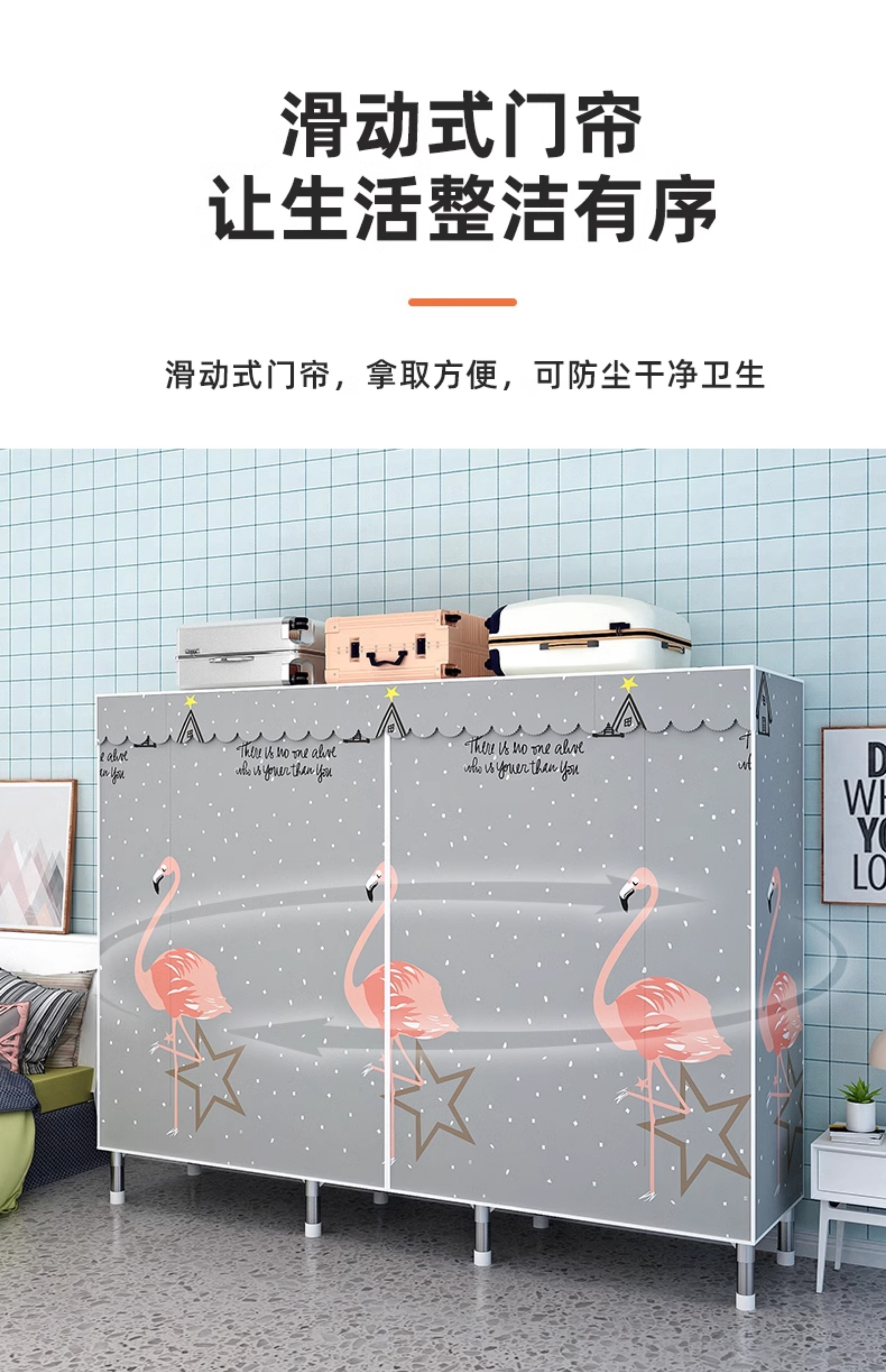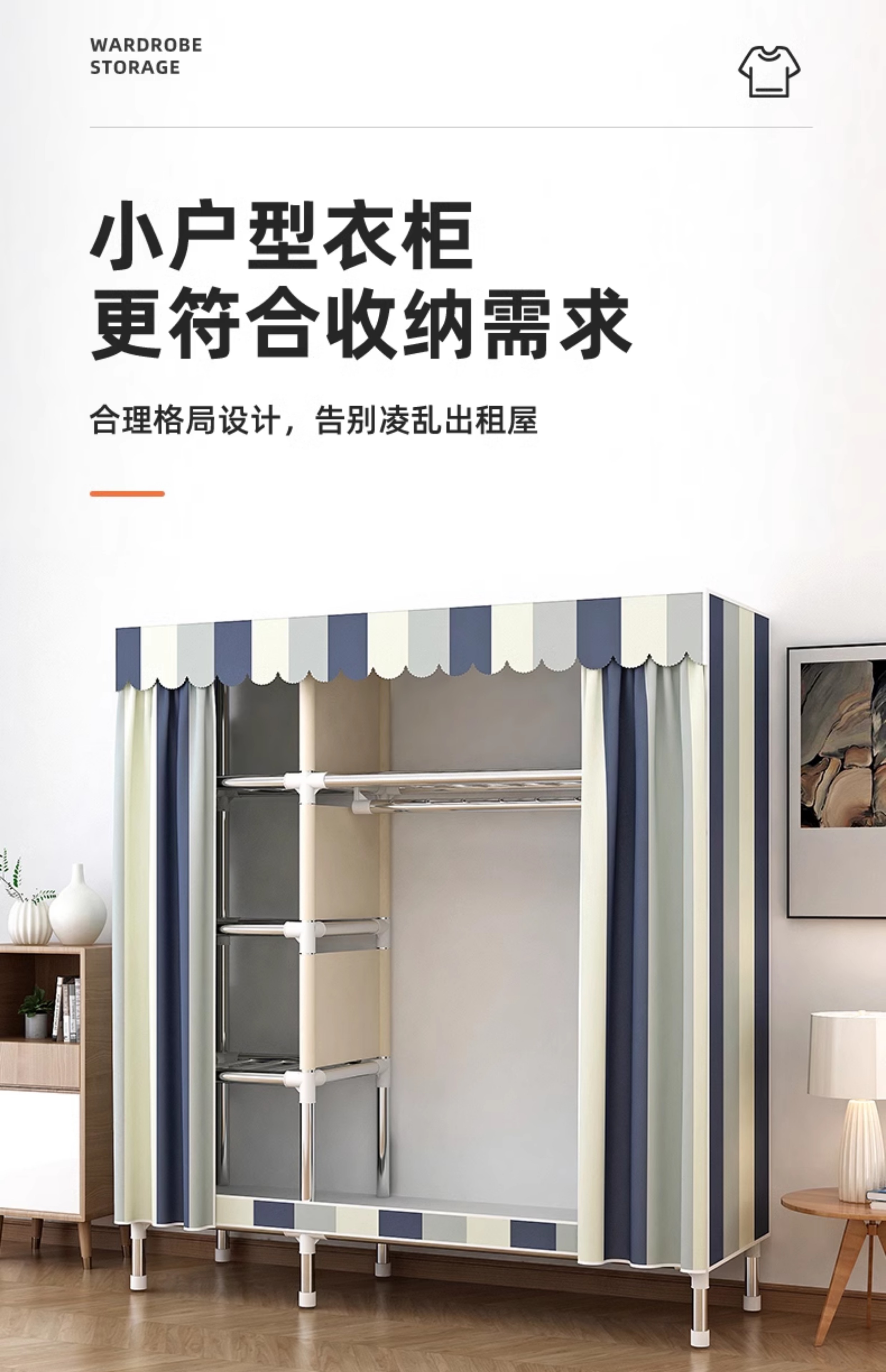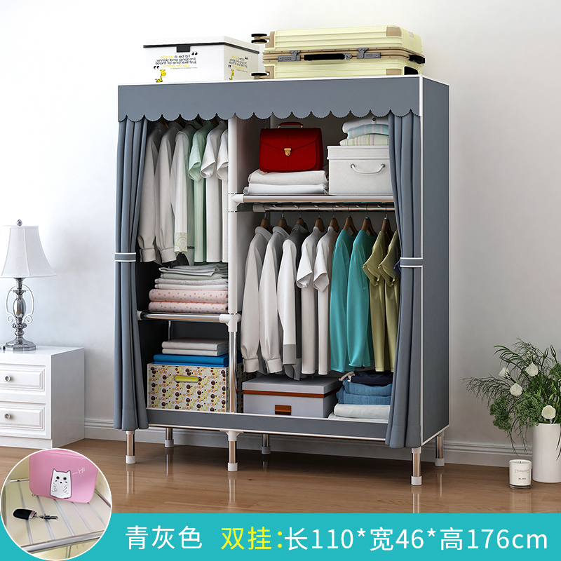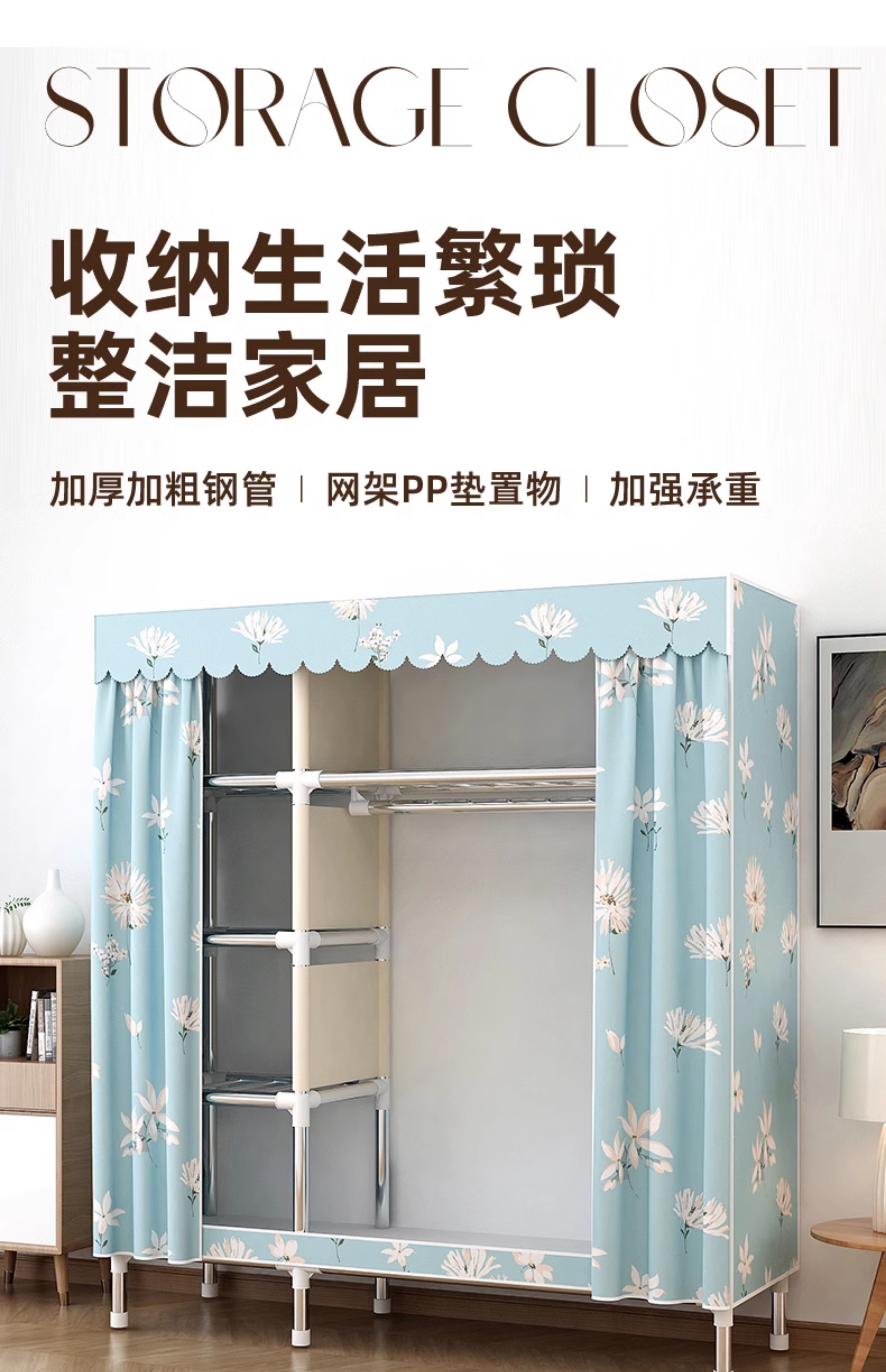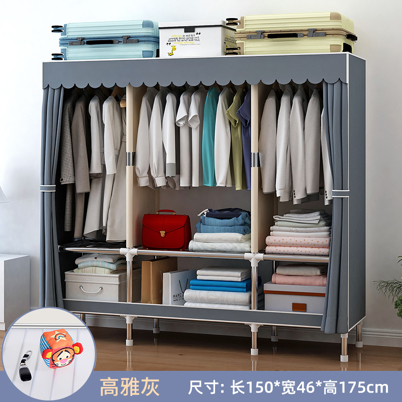 가정용 침실 임대실을 위한 간단한 천 옷장, 강철 프레임, 견고하고 내구성이 뛰어난 소형 가정용 경제적 인 보관 천 옷장