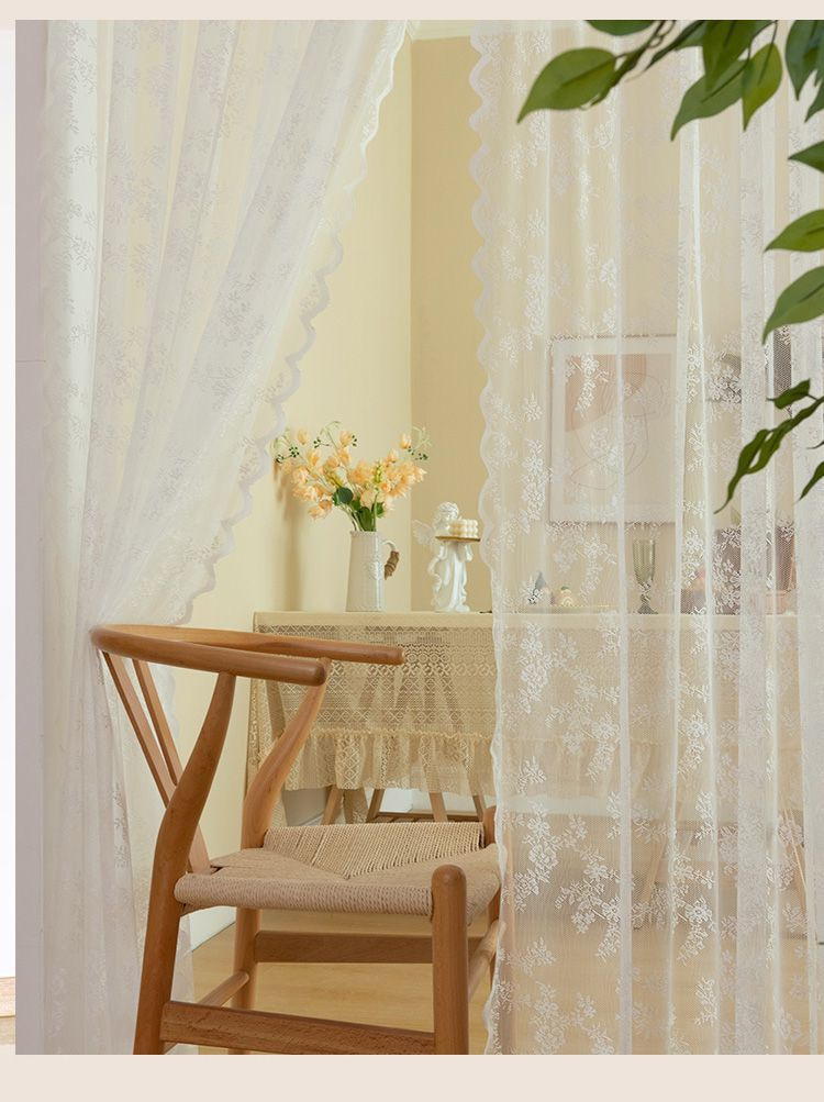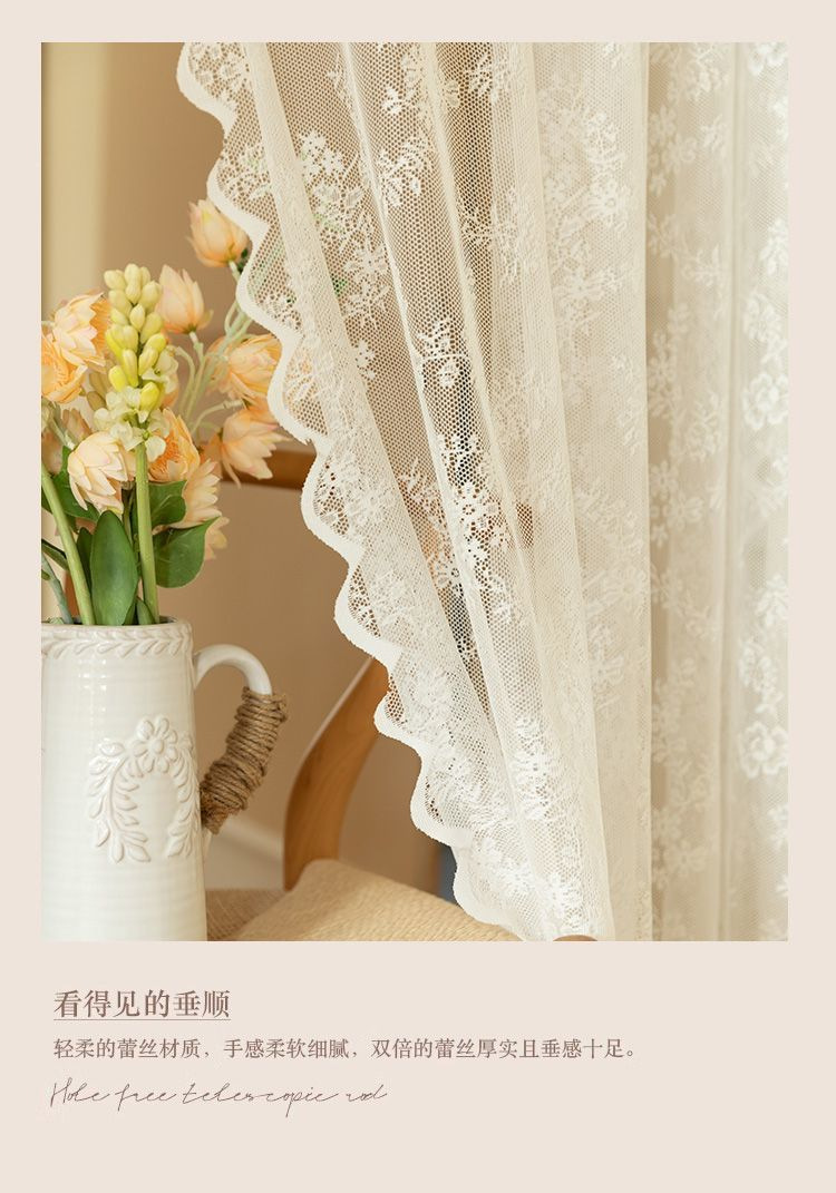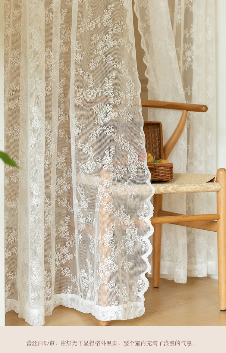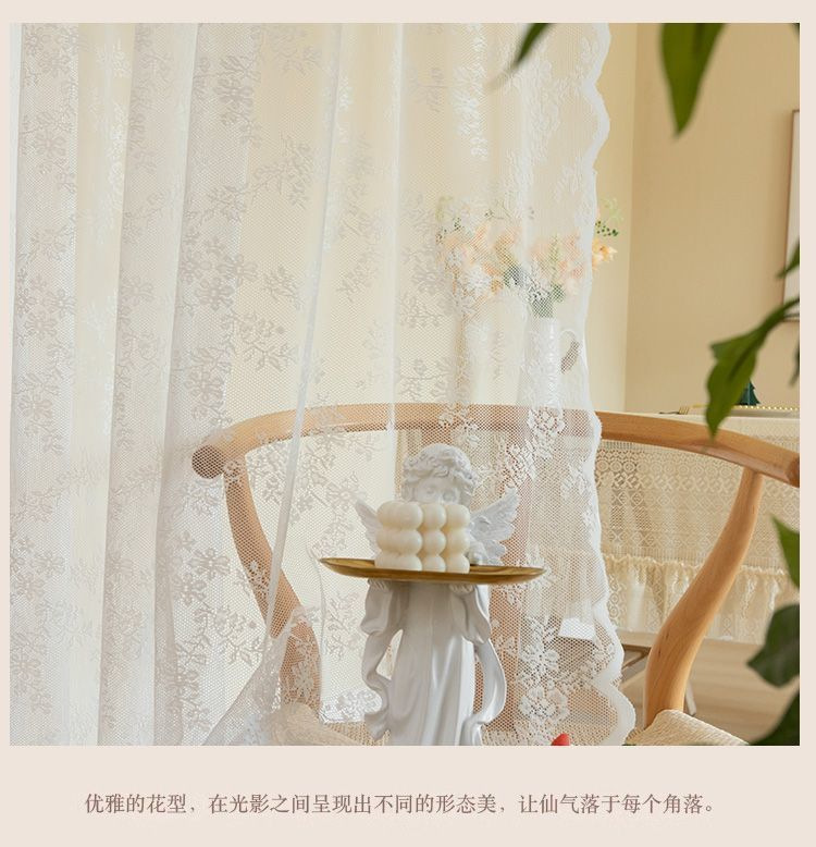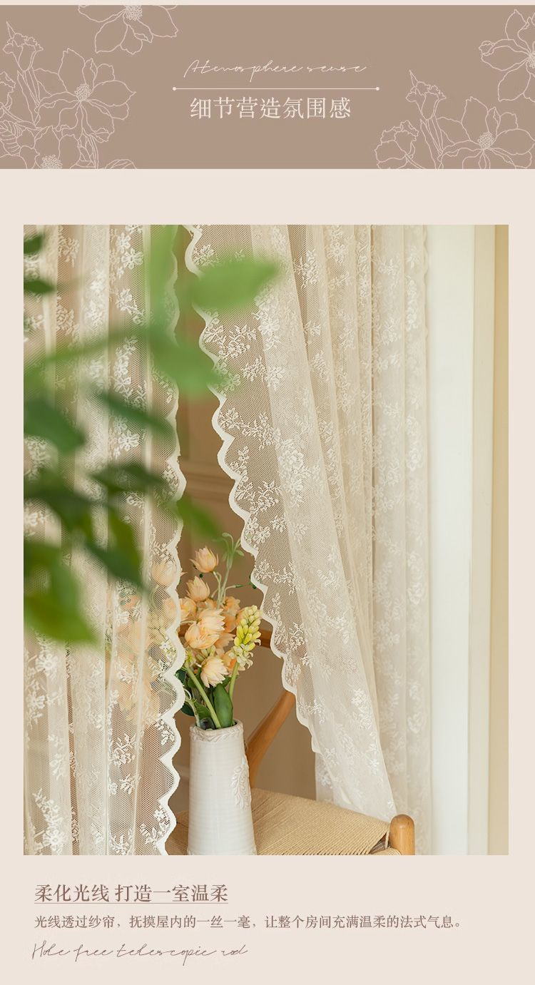 프렌치 스타일 파티션 프리 창 펀치 커튼 2024 화이트 레이스 거즈 커튼 새로운 스타일의 로드 플로팅 창문 커튼 벨크로 커튼스토어 가기