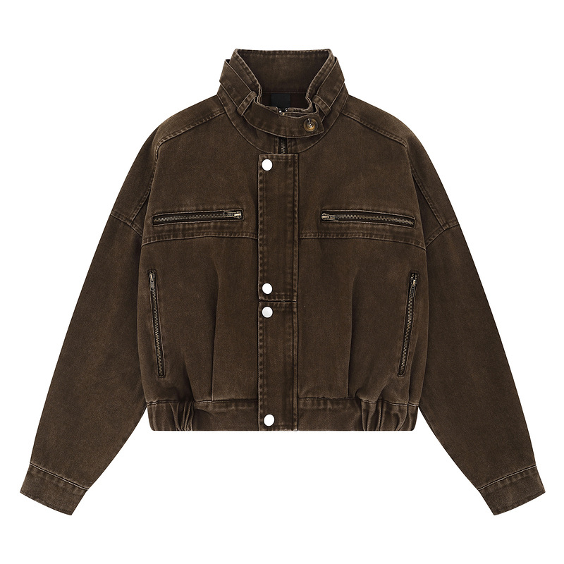 의류 남성 미국 스타일 복고풍 작업복 스타일 느슨한 짧은 오토바이 재킷 여성 2025 가을 새로운 스타일스토어 가기