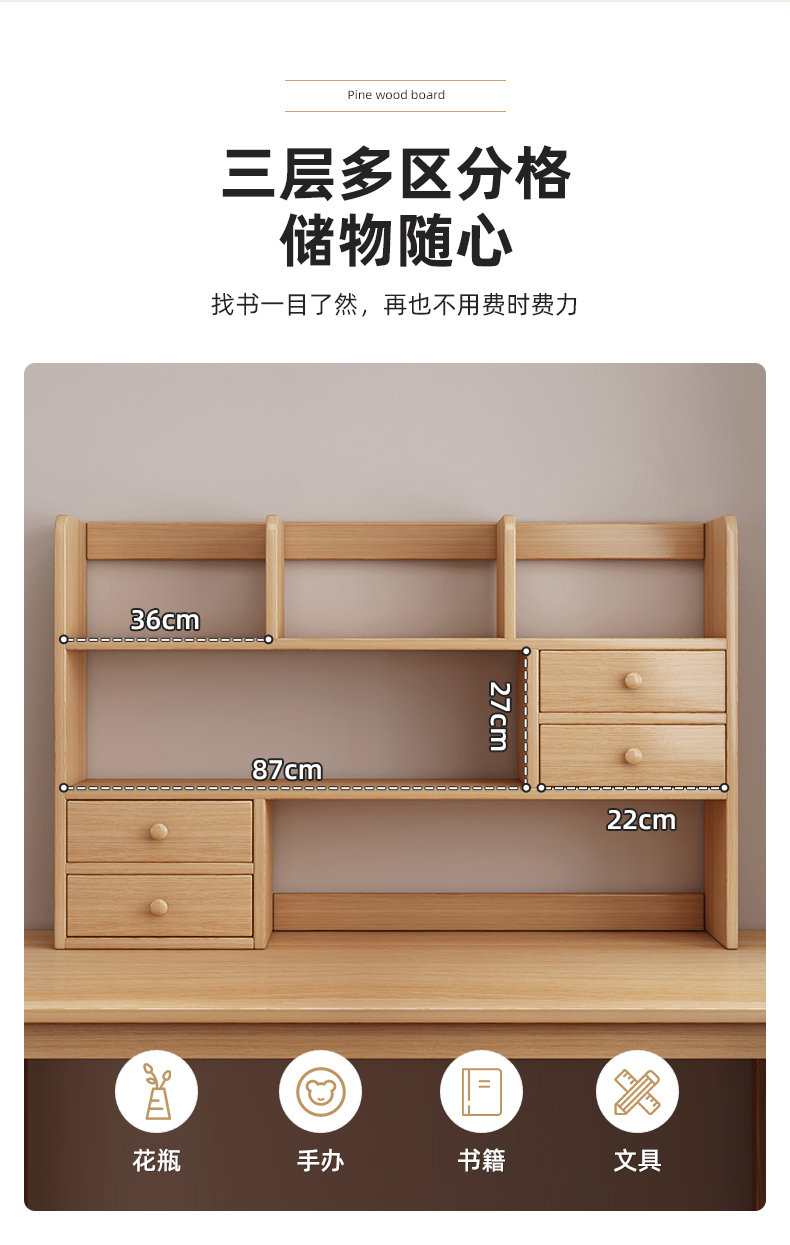 단단한 나무 책장 학생 책상 수납 선반 데스크탑 수납 선반 테이블 어린이 책장 벌크창 수납 간이 캐비닛