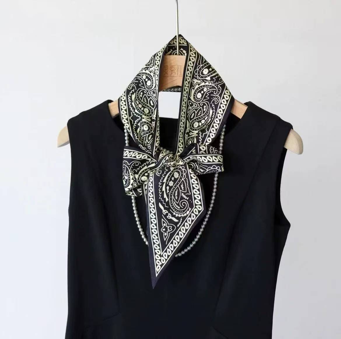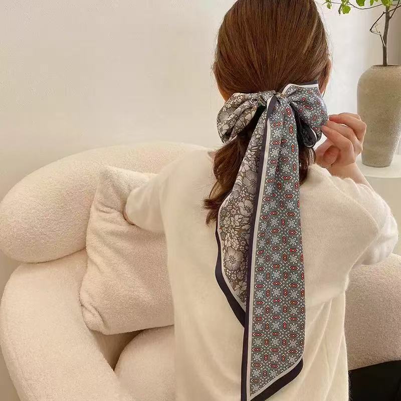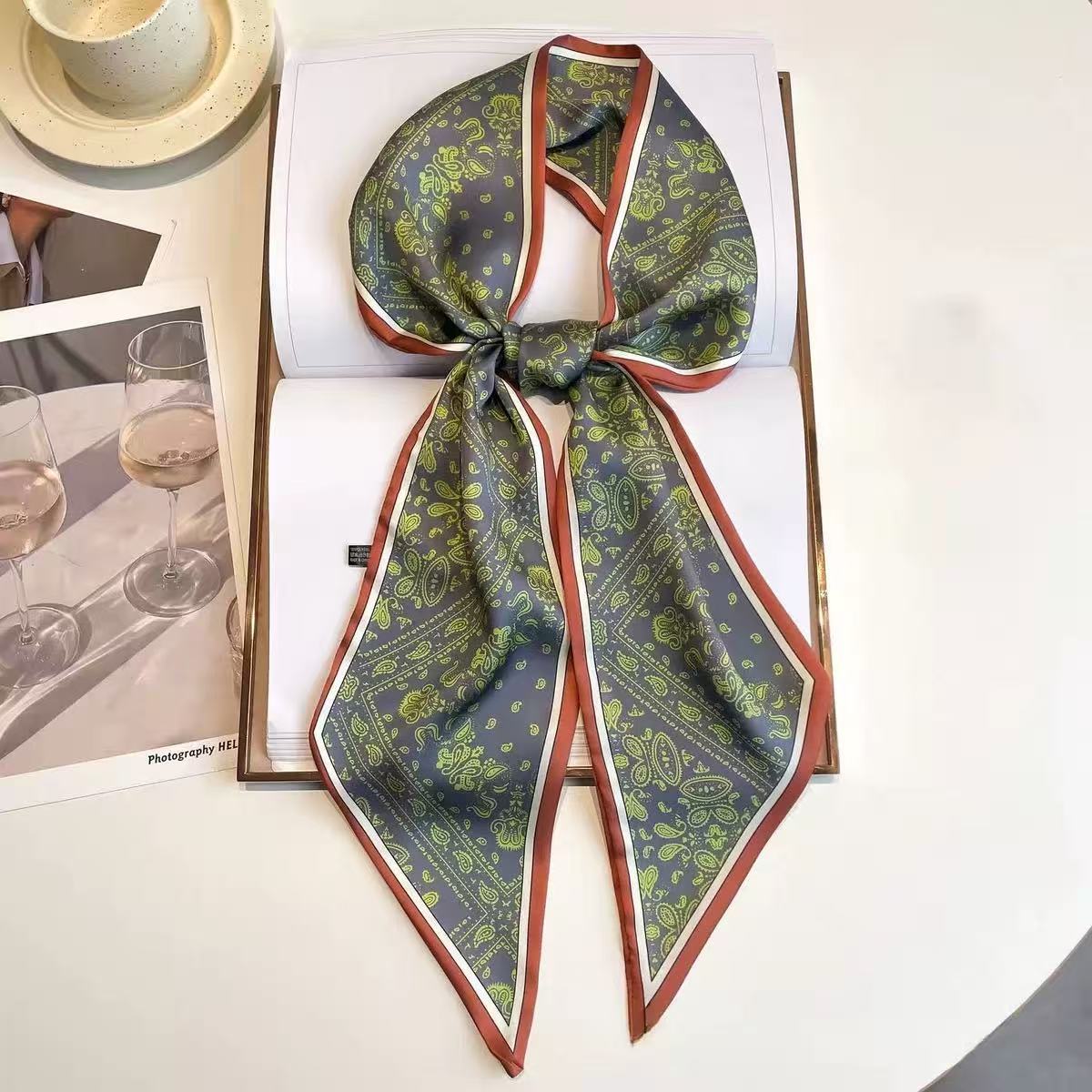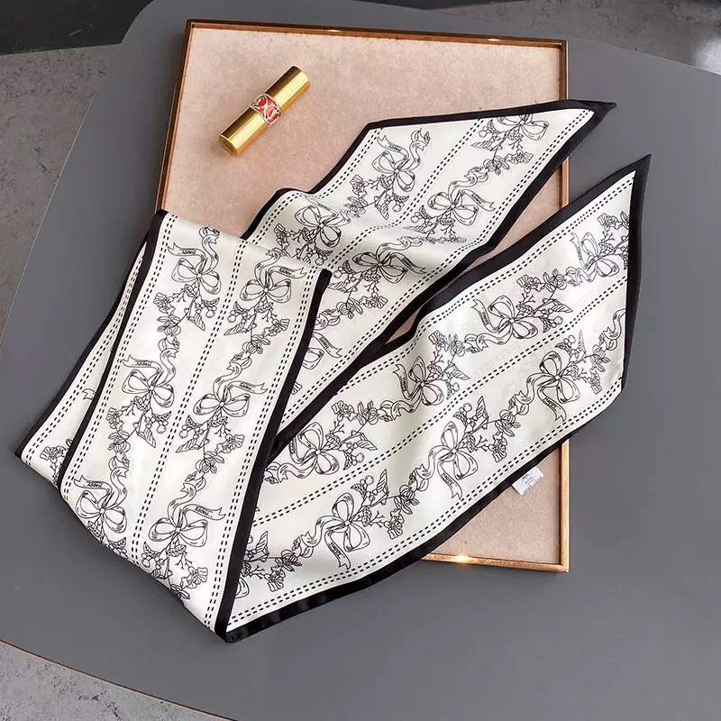 봄 여름 신상 프렌치 롱 실크 스카프, 패셔너블하고 심플하며 활용도가 높은 벨트, 헤어밴드, 레이어드 백, 리본 액세서리