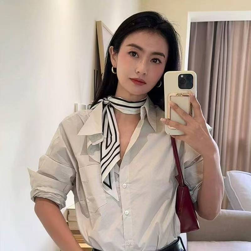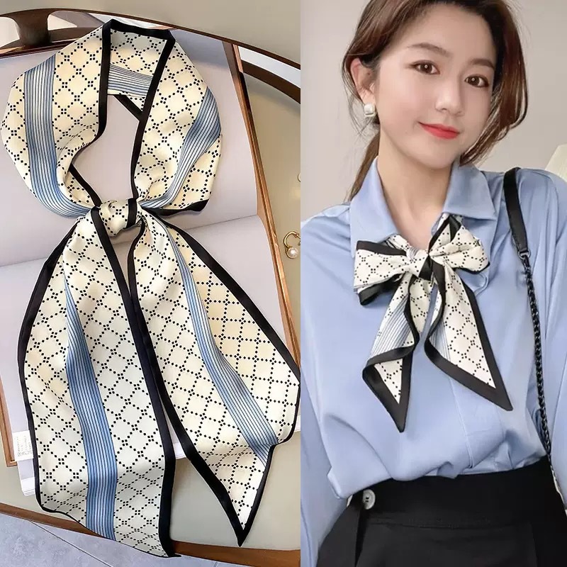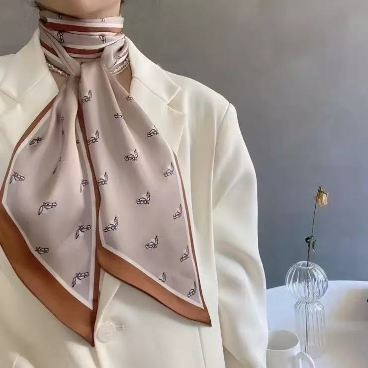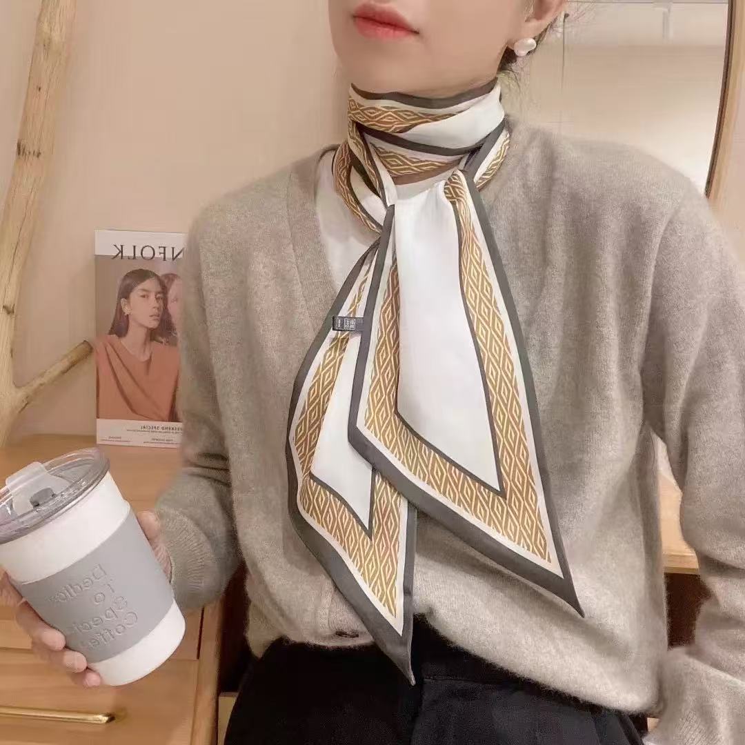 봄 여름 신상 프렌치 롱 실크 스카프, 패셔너블하고 심플하며 활용도가 높은 벨트, 헤어밴드, 레이어드 백, 리본 액세서리스토어 가기
