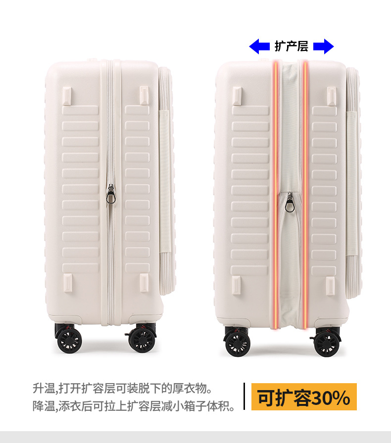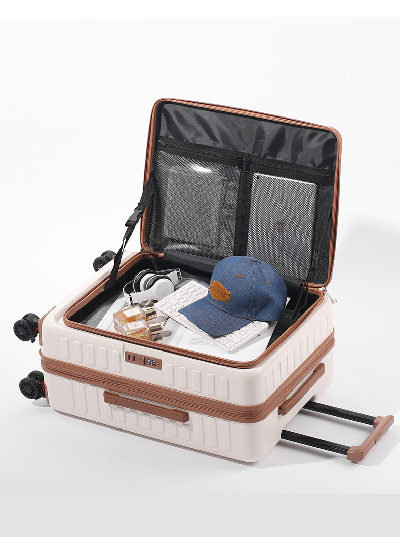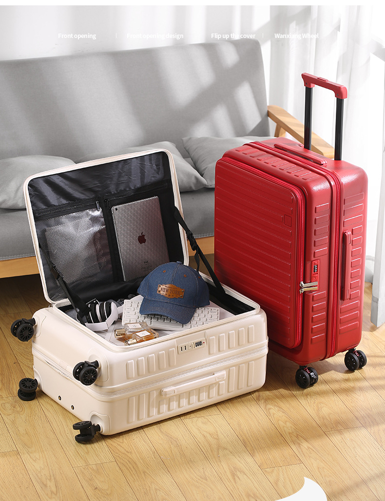 전면 개방형 여행가방 지퍼박스 20inch 기내용 다기능 트롤리 박스 여행용 비밀번호 자물쇠가 있는 남녀공용 여행가방
