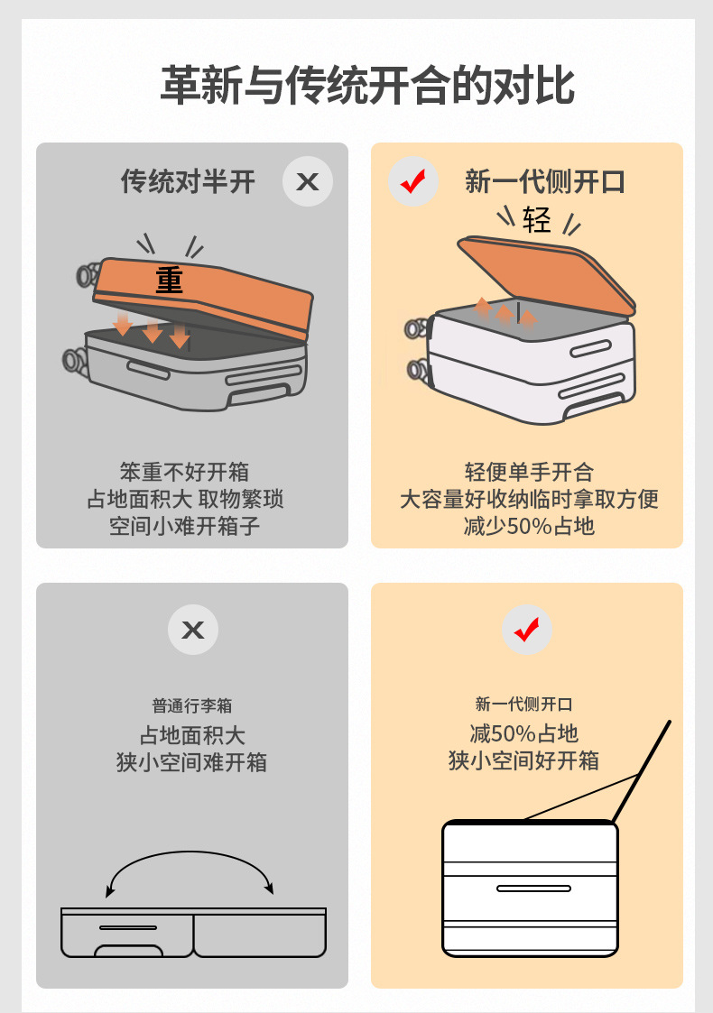 전면 개방형 여행가방 지퍼박스 20inch 기내용 다기능 트롤리 박스 여행용 비밀번호 자물쇠가 있는 남녀공용 여행가방스토어 가기
