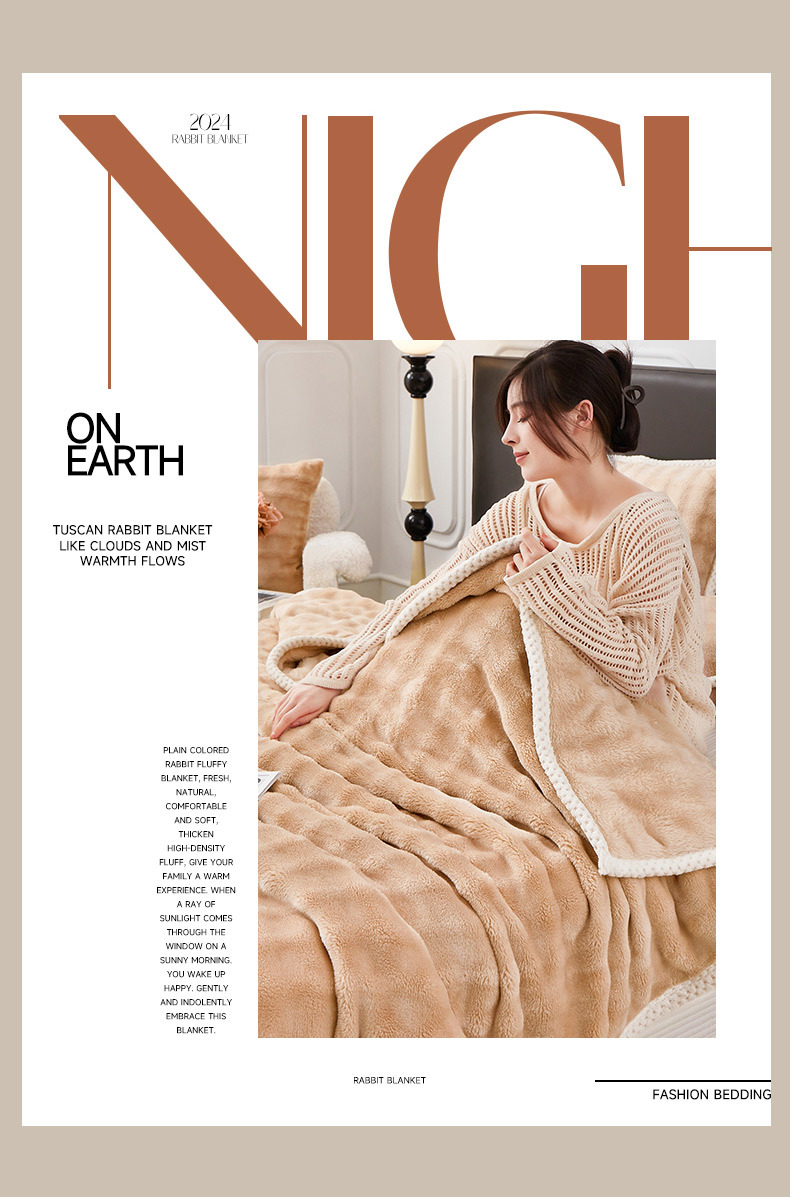 • 두꺼운 모조 토끼 플러시 담요 (카키색)