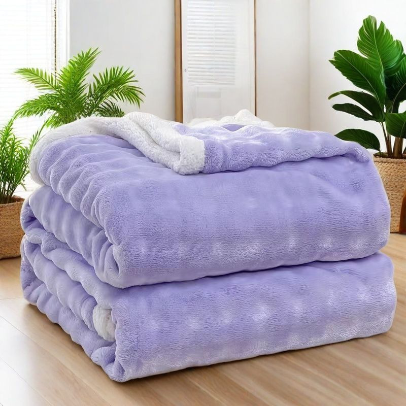 • 두꺼운 모조 토끼 플러시 담요 (연한 보라색)
