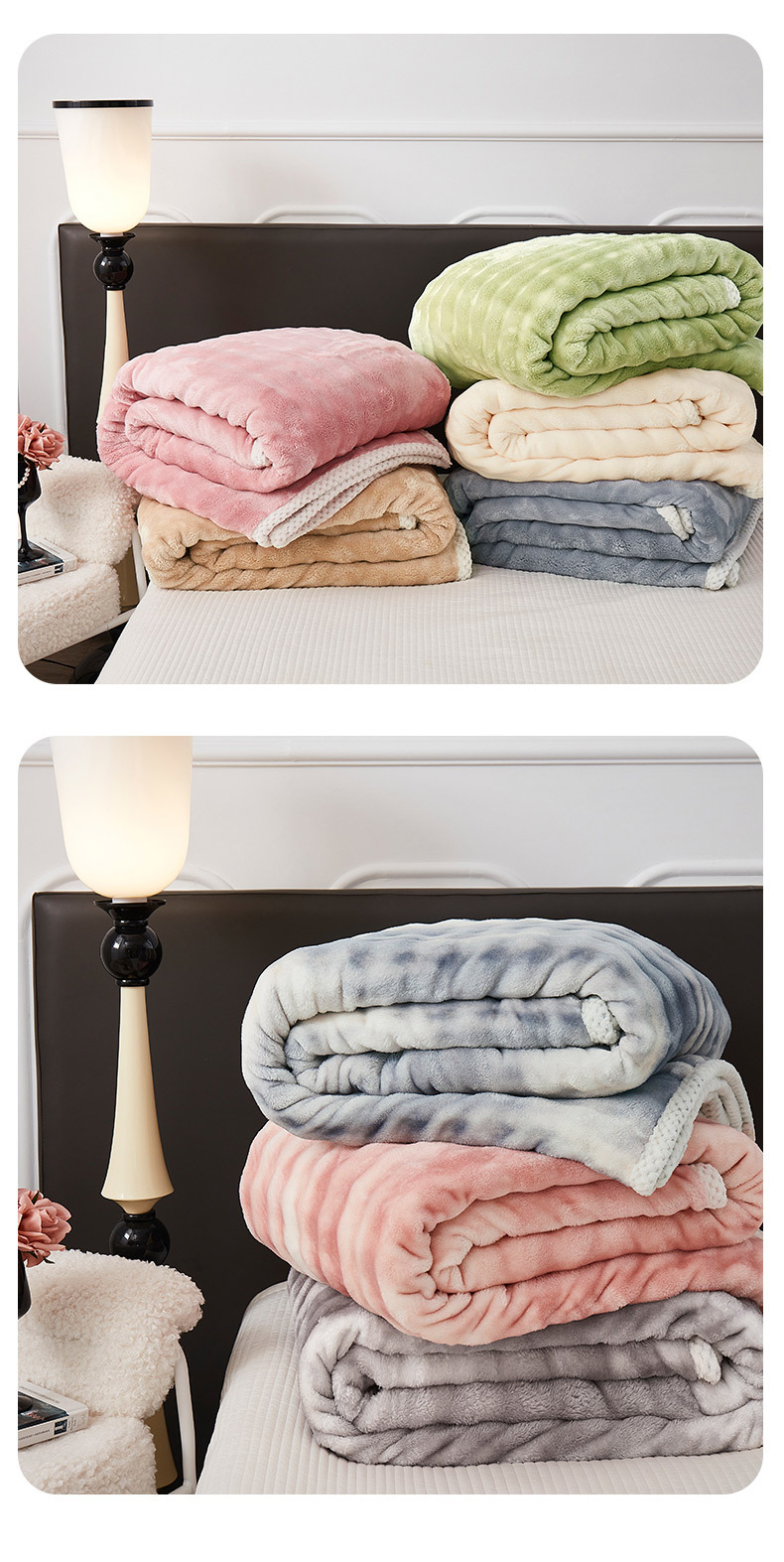 • 단색 두꺼운 우유 벨벳 담요 (회색)
