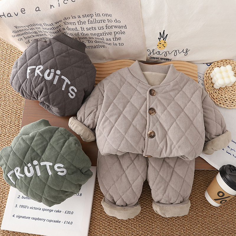 2025 겨울 새로운 스타일 두꺼운 어린이 아기 스타일 가정 의류 유행 투피스 세트 공장 도매