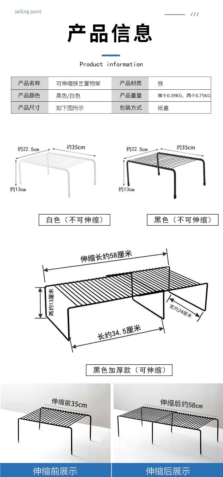 • 흰색 확장형 수납선반